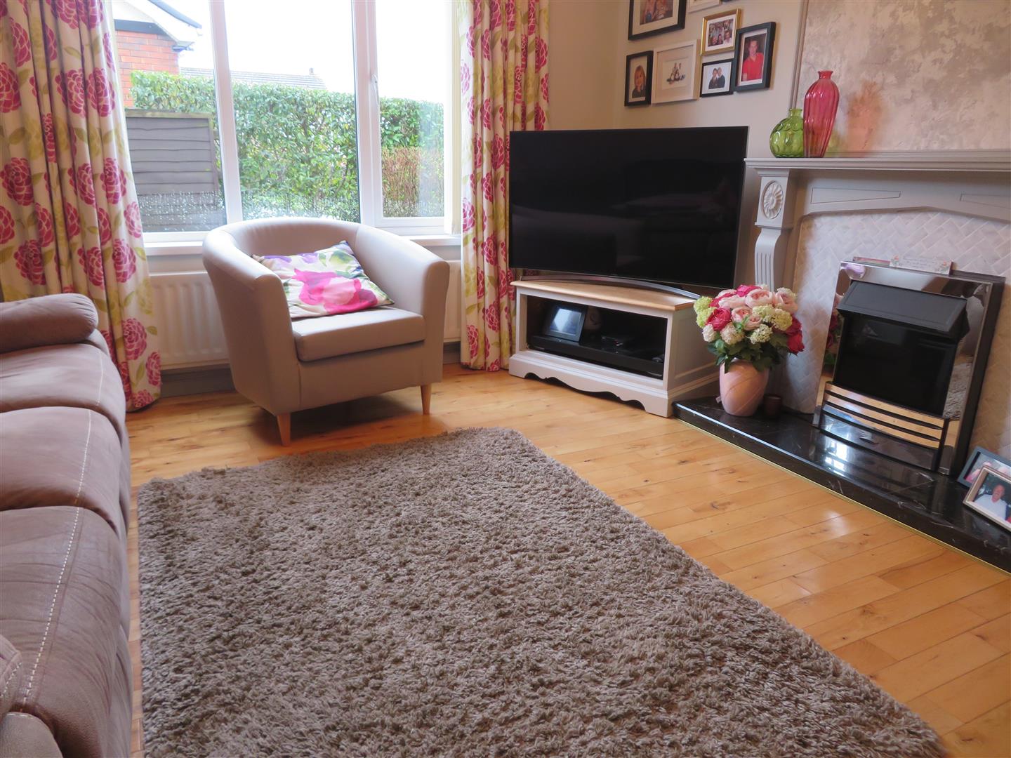 Generous front aspect reception room benefitting from large picture window, attractive fireplace with electric inset (open fire behind), carpet flooring and decorative cornicing and centrepiece.
