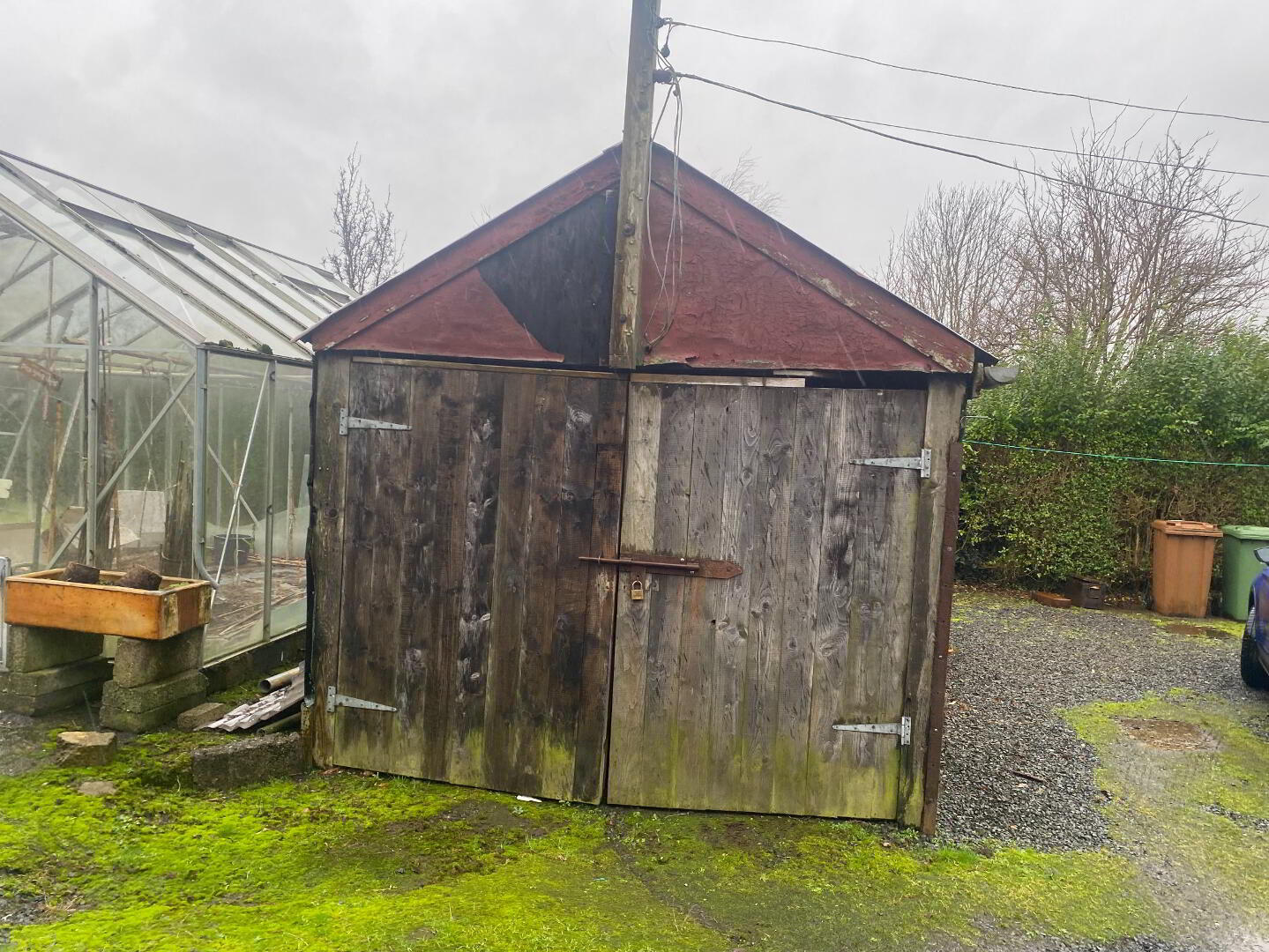 35 Mill Hill is a semi-detached chalet bungalow set on a generous site with front and large rear garden areas, offering excellent potential for renovation and improvement. The property is surrounded by mature outdoor space and benefits from a range of sheds, outbuildings and garage, making it ideal for those with gardening, storage or hobby needs. Internally, the accommodation comprises a living room featuring an open fire with back boiler, a bedroom, separate sitting room with open fire, kitchen and downstairs 3 piece shower room.