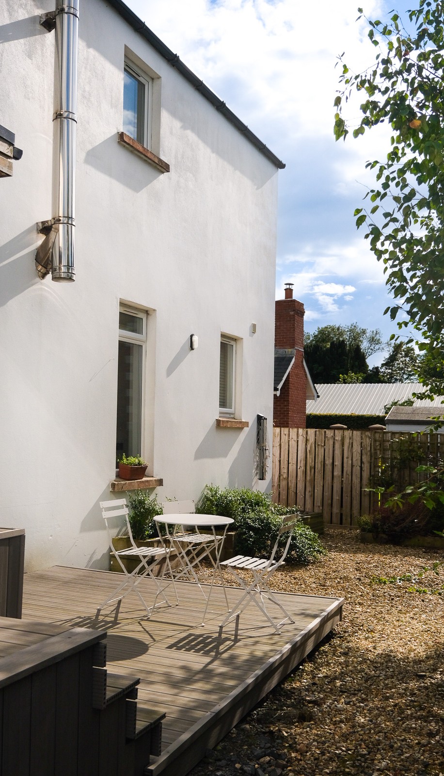 Mature landscaped gardens in lawn with easy maintenance beds in plants and shrubs. Feature composite sun decks to the front and rear designed to catch the sunshine at different times of the day.