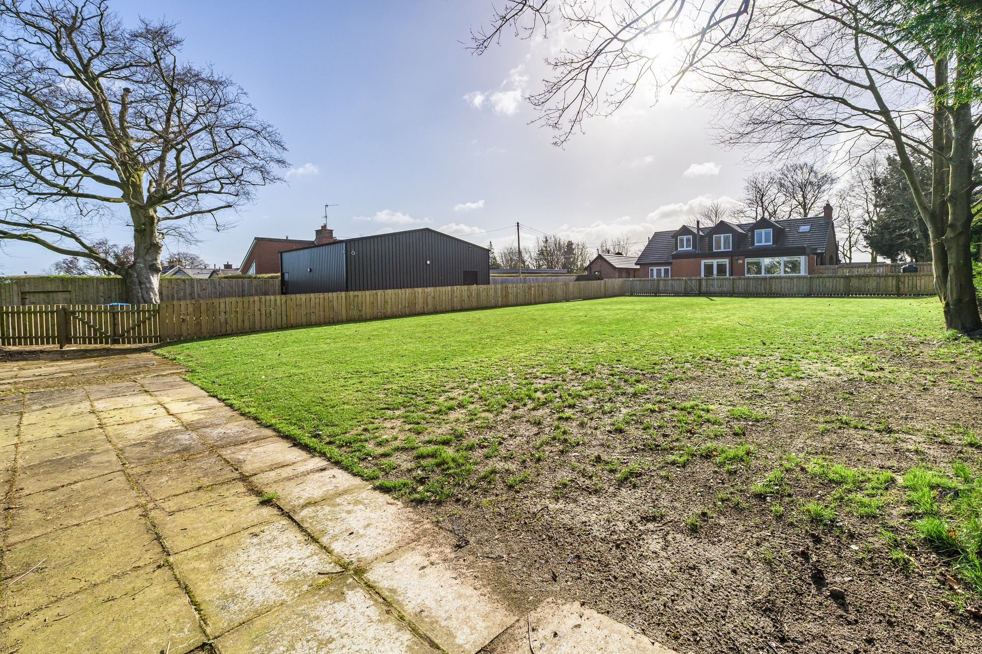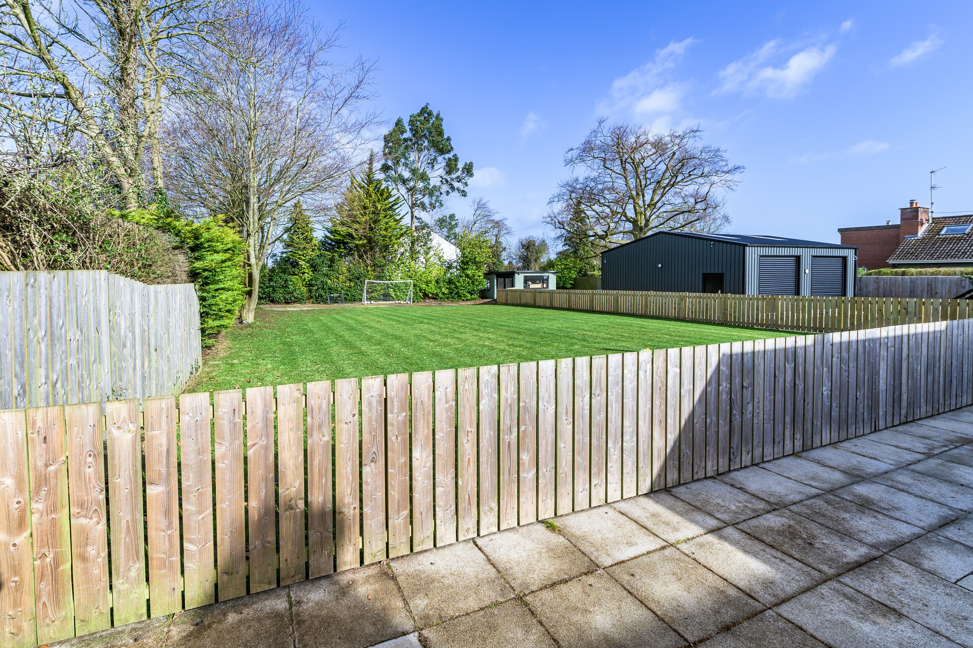 Single garage to the side. separate yard area with double metal garage / workshop to the side.