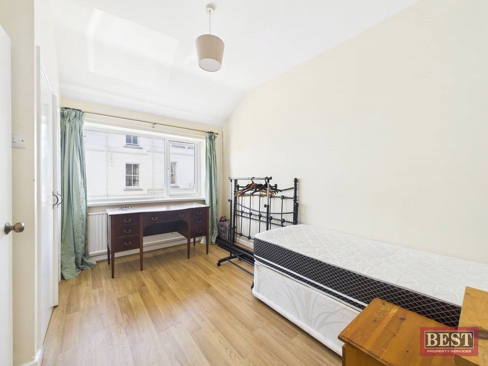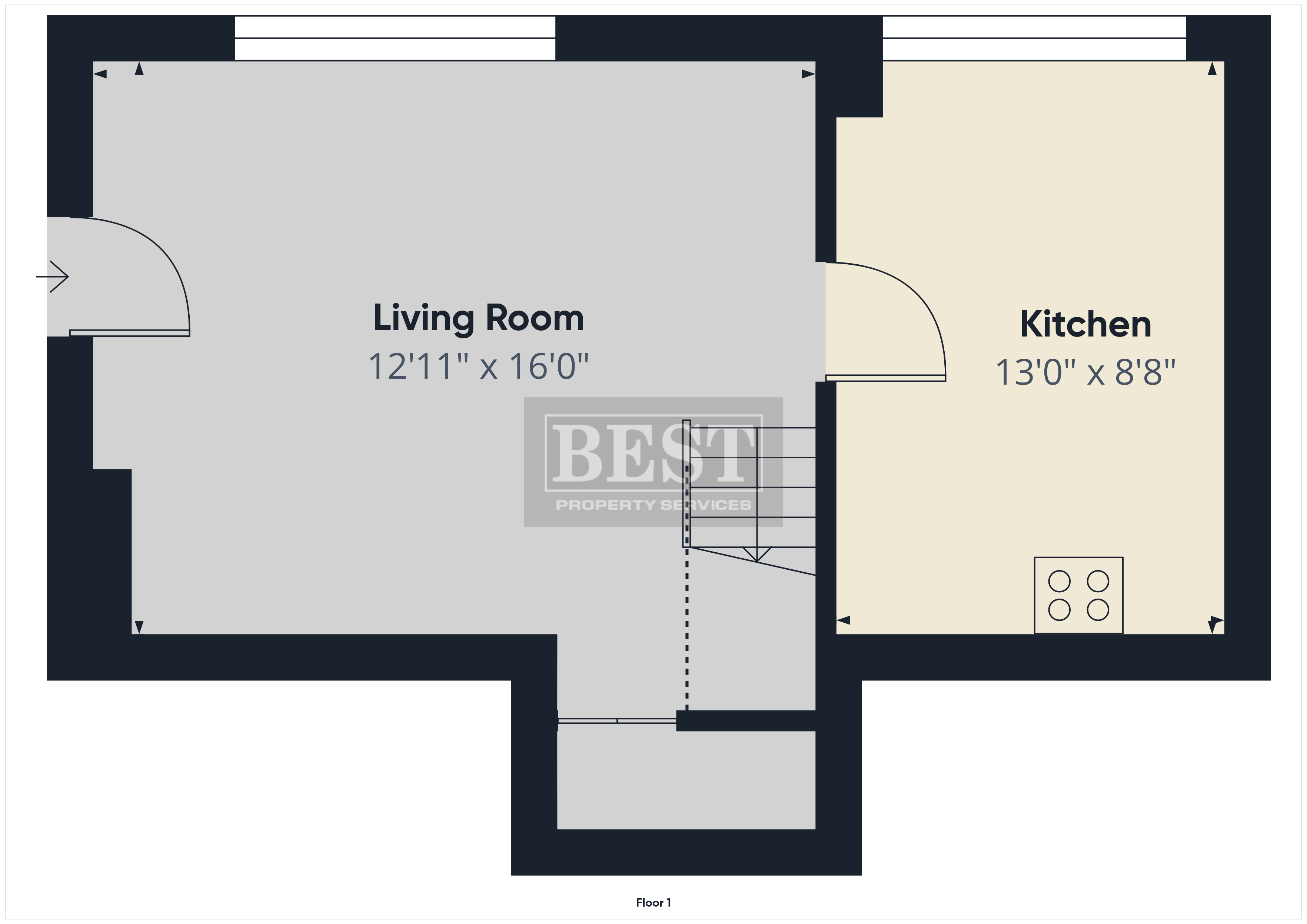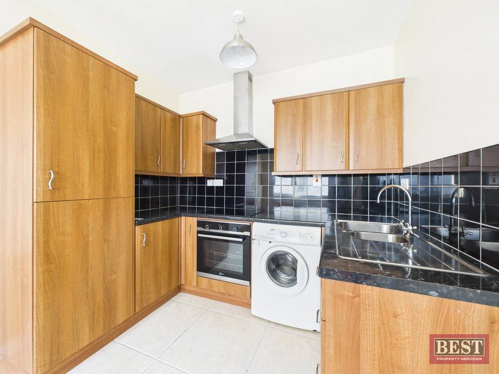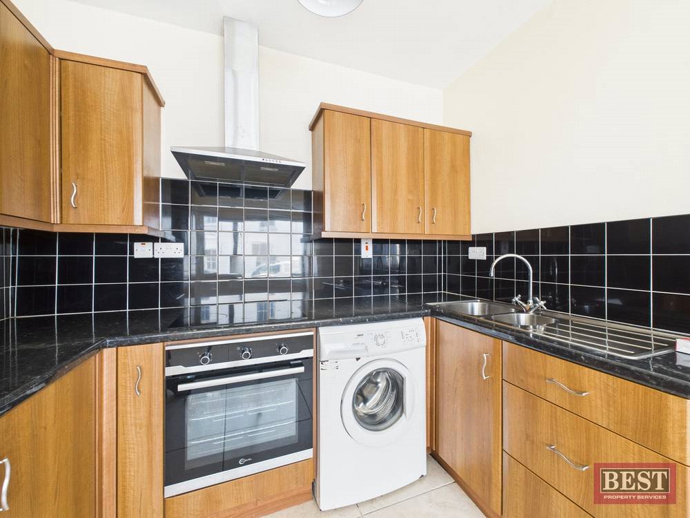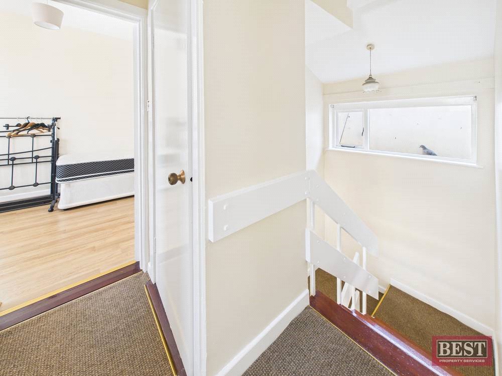Upon entering, you are greeted by a spacious living room with a large front window that allows plenty of natural light, along with convenient under stair storage. The room leads into a kitchen and dining area, equipped with a full range of upper and lower kitchen units, appliances, and space for a dining table.