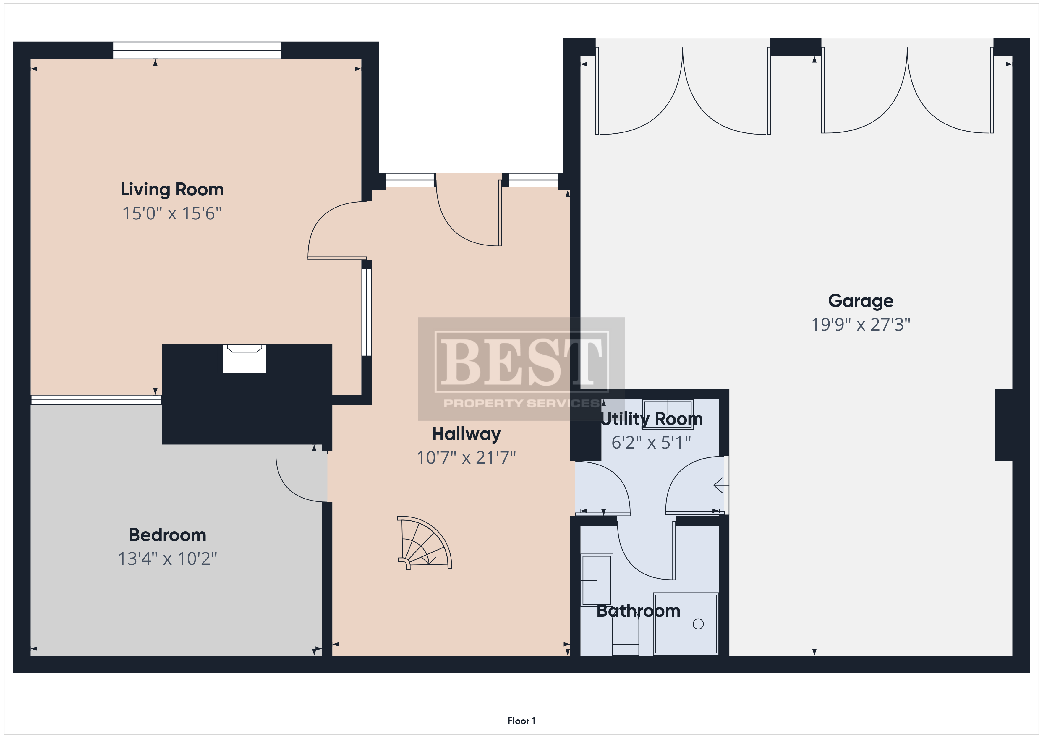 Descending the spiral staircase, you enter another impressive hall area which connects to double front doors offering separate lower-ground access. This floor includes two garages, a second utility room, a WC, and an additional bedroom. There is also a generous living room / study with a large stove-perfect for relaxing on winter evenings.