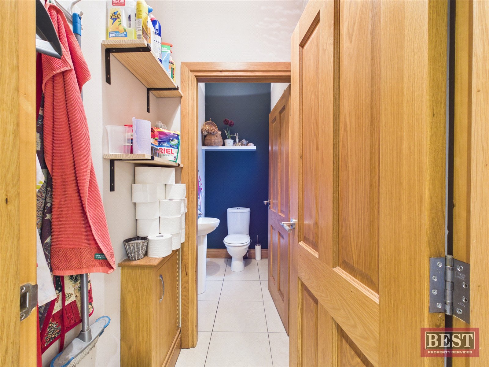 On entering the property you will find a welcoming entrance hall that leads you through to the spacious living room to the front of the house. To the rear, a kitchen with full range of kitchen units and appliances, plenty of space for a dining table and convenient storage tucked under the stairs. Additionally, the property benefits from a separate utility room and downstairs w/c