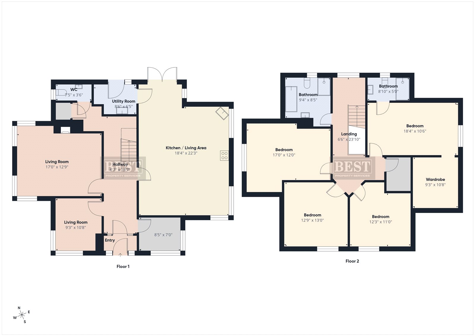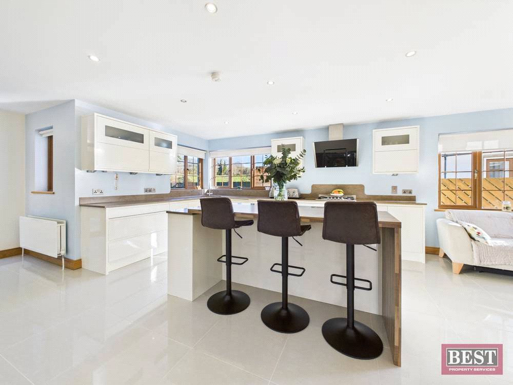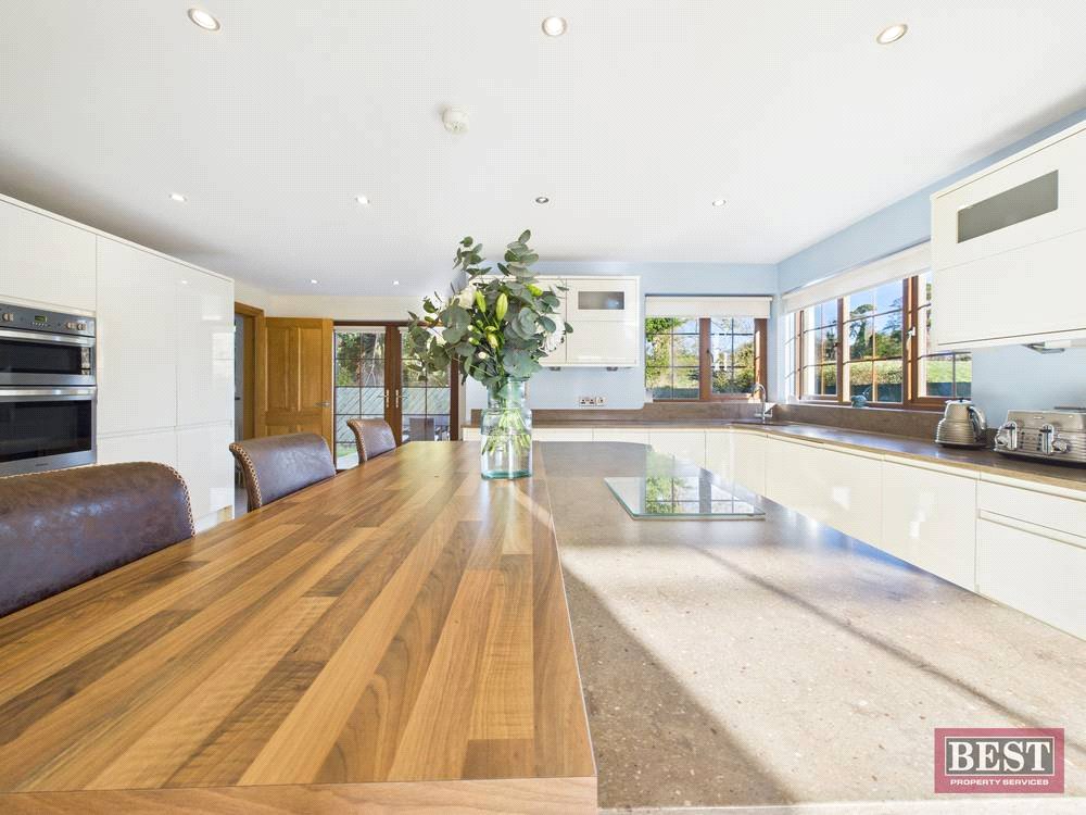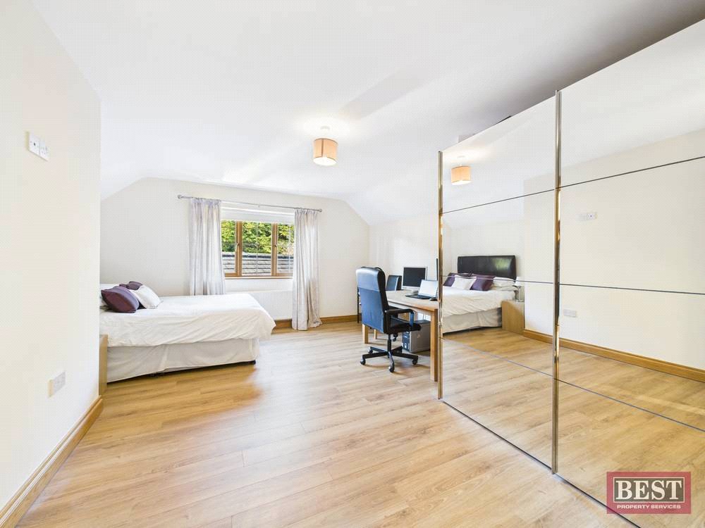 Upstairs, the property comprises three well-proportioned double bedrooms, a luxurious family bathroom, and an impressive master suite featuring a large ensuite bathroom and a spacious walk-in wardrobe that could be repurposed as a fifth bedroom if required.