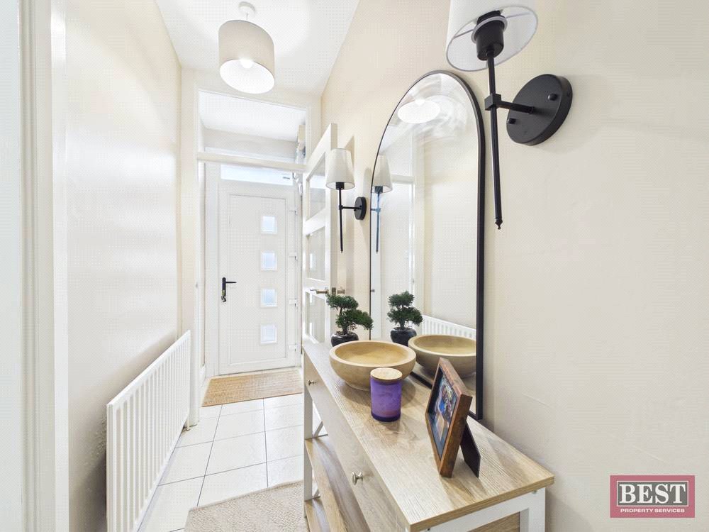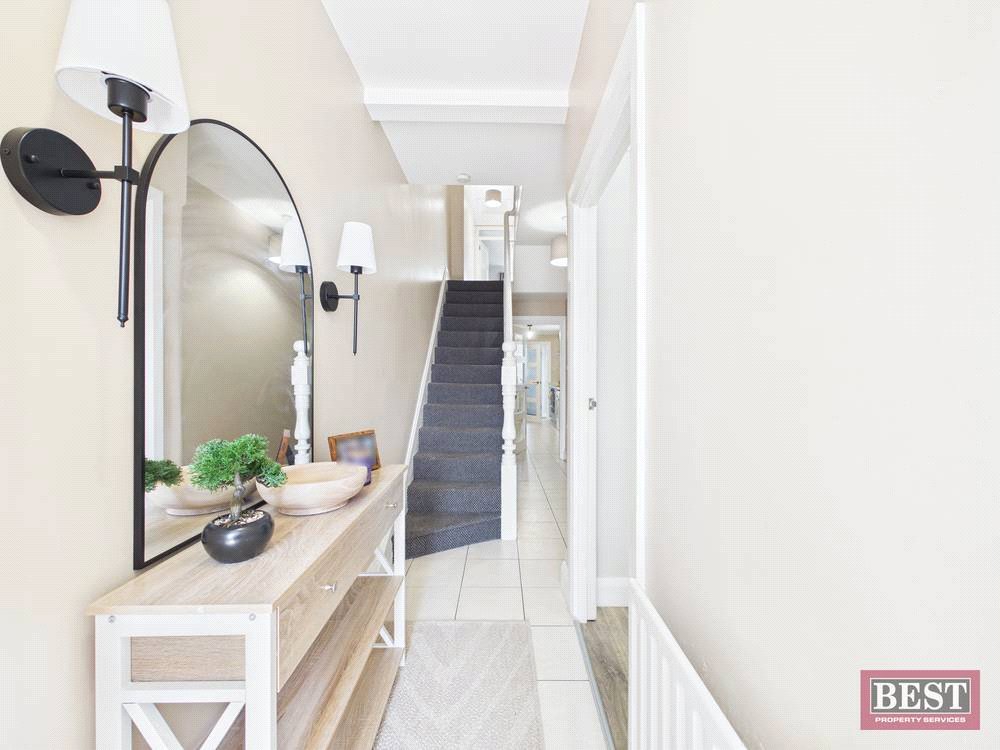 The property has been modernised throughout and comprises of an entrance hall with a bright and spacious living room with a log burning fire. The kitchen has a full range of contemporary upper and lower kitchen units, as well as access to the rear garden along with a downstairs utility/WC.