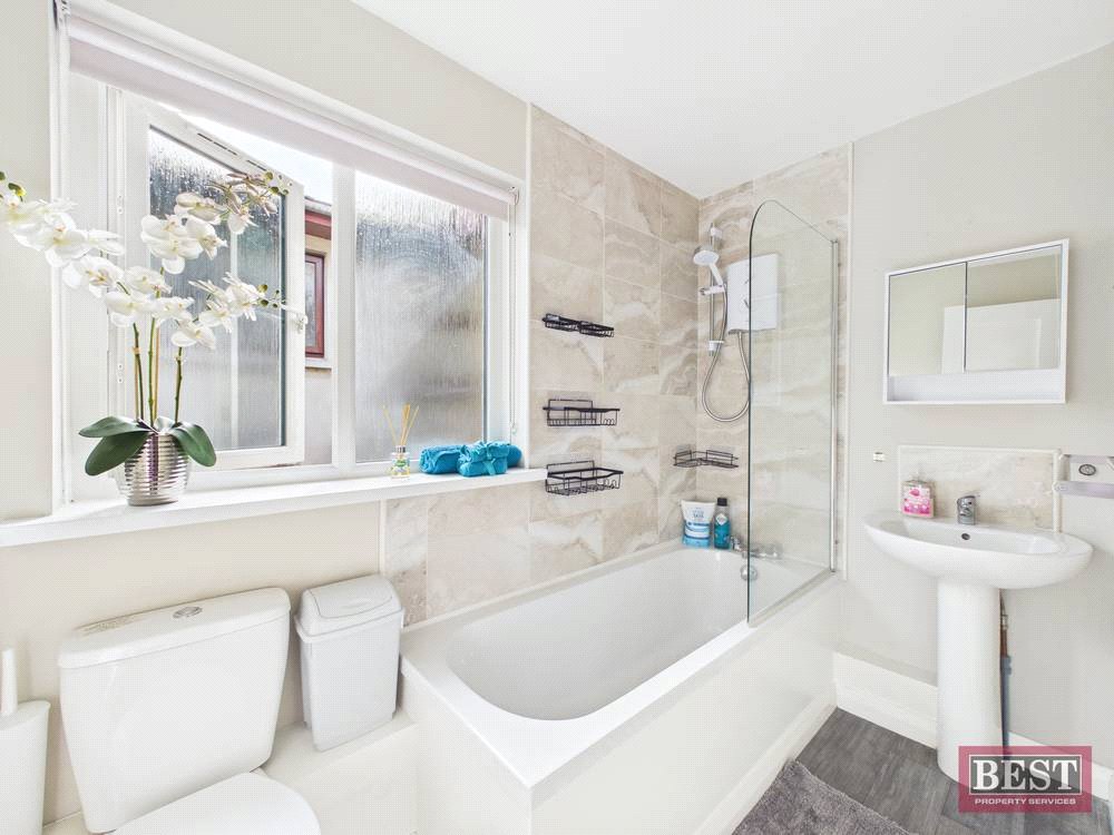 On the first floor, there are two double bedrooms, single bedroom and the main bathroom.
