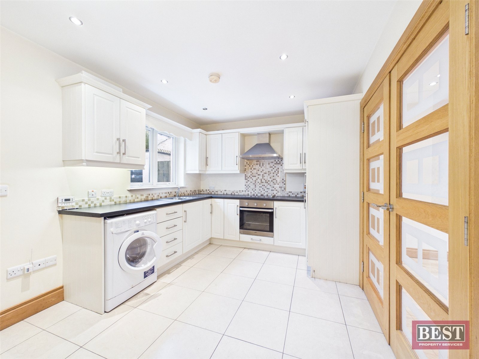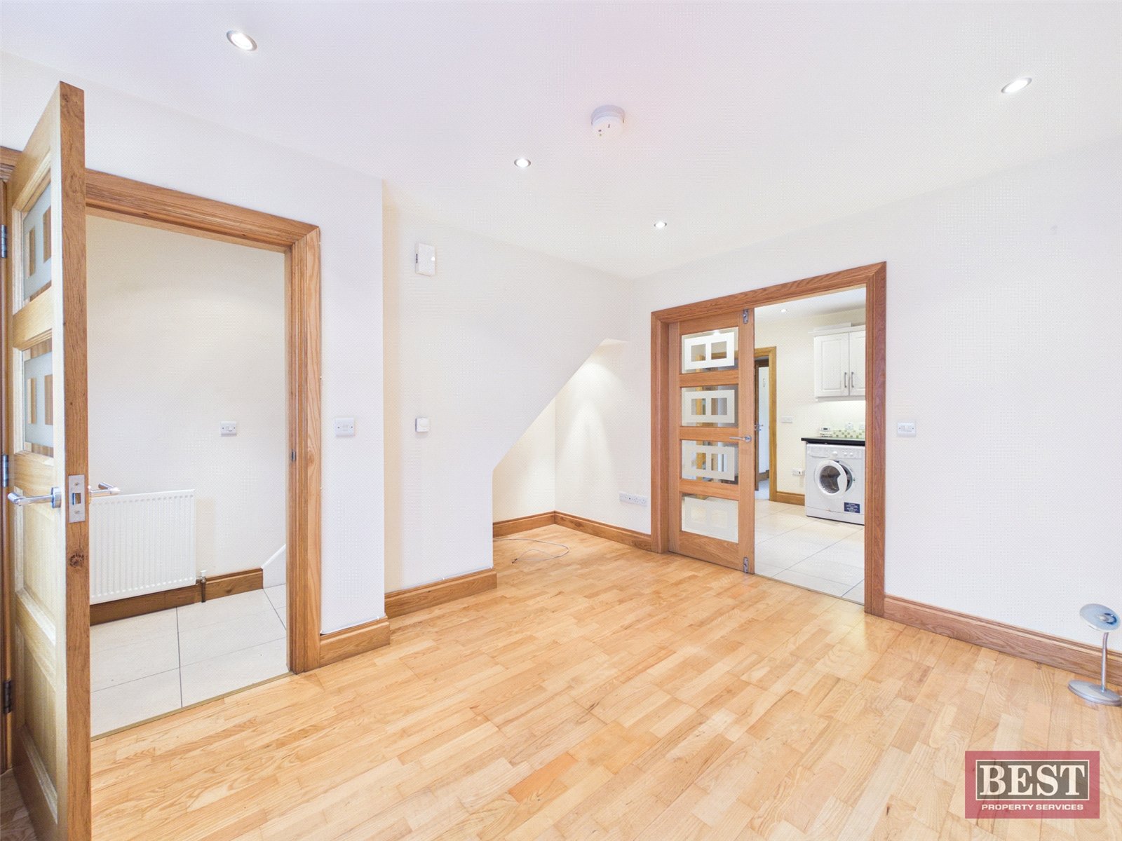 On entering the property, you will find a short entrance way leading you to the front room with alcove storage space under the stairs. The front room is connected to the kitchen via double doors allowing for an open plan feel. The kitchen has a full range of upper and lower kitchen units as well as appliances and plenty of space for a dining table. To the rear of the property is a rear hallway and downstairs w/c.
