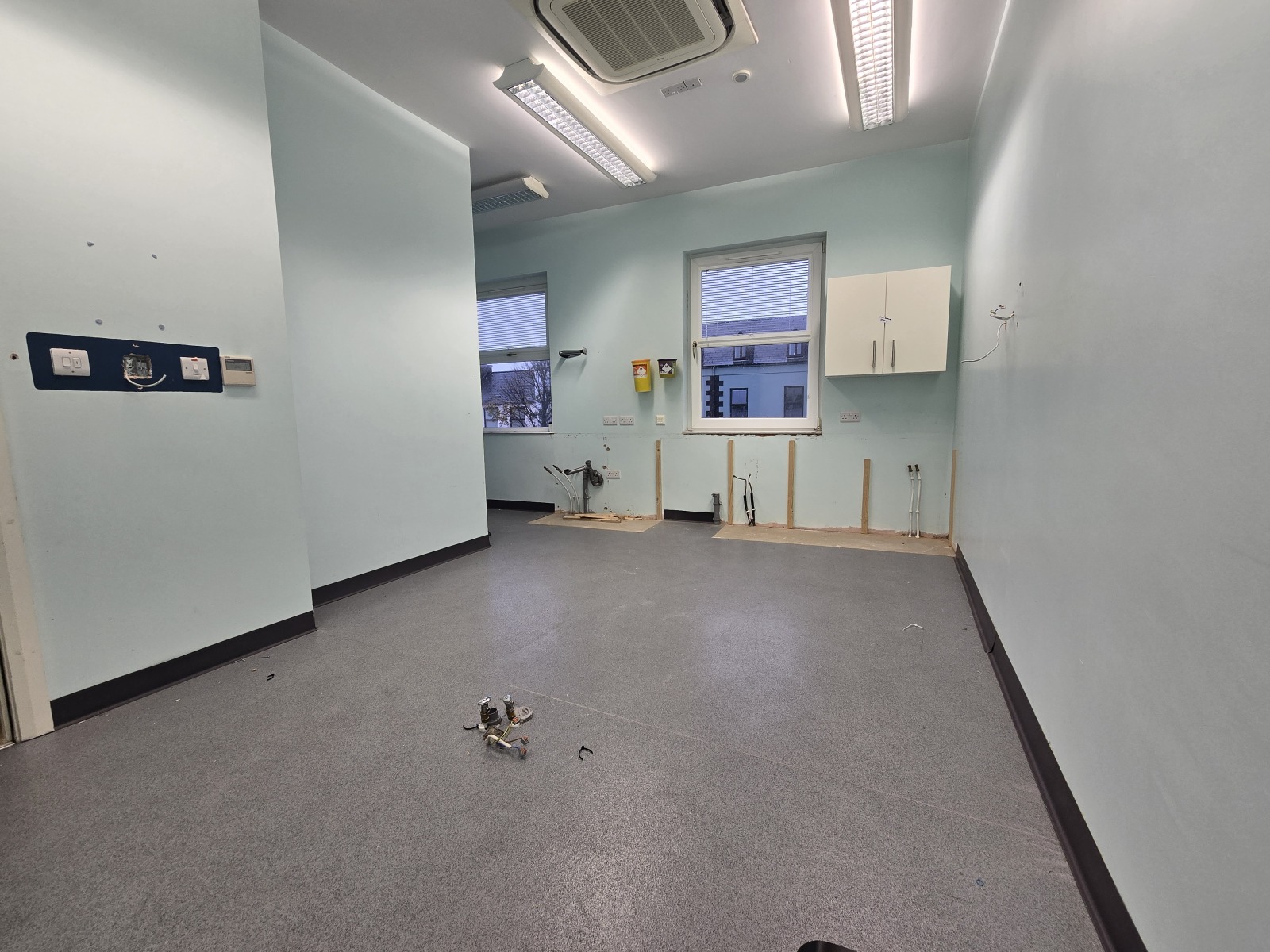 Laminate floor, data truncking surround, floor fitted Mechanical, electrical and plumbing (MEP), automatic sensor lights, intercom.