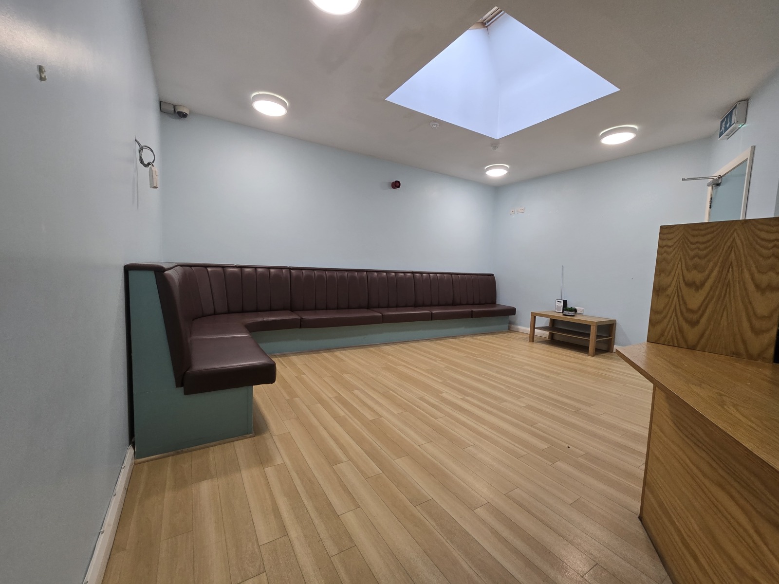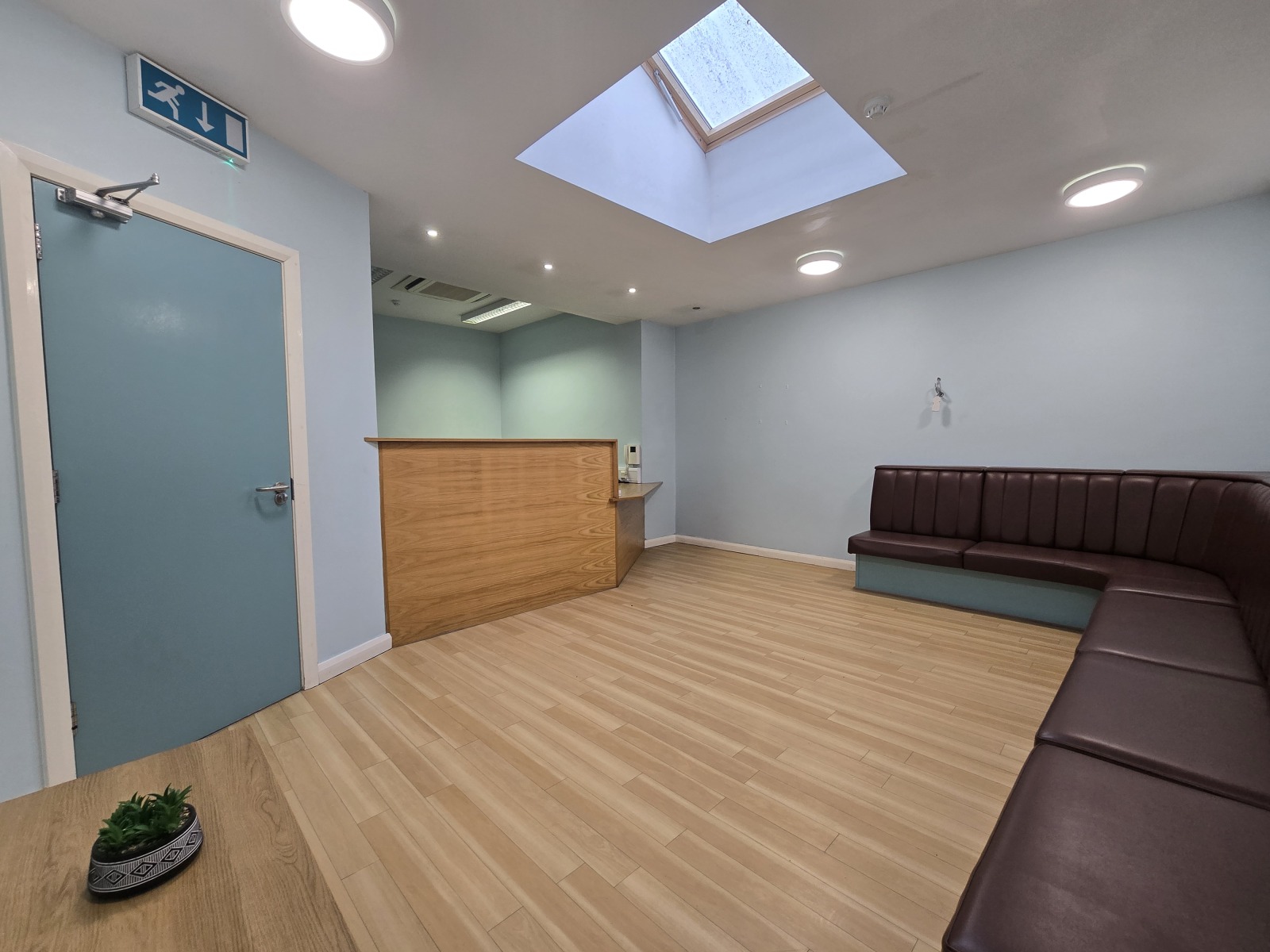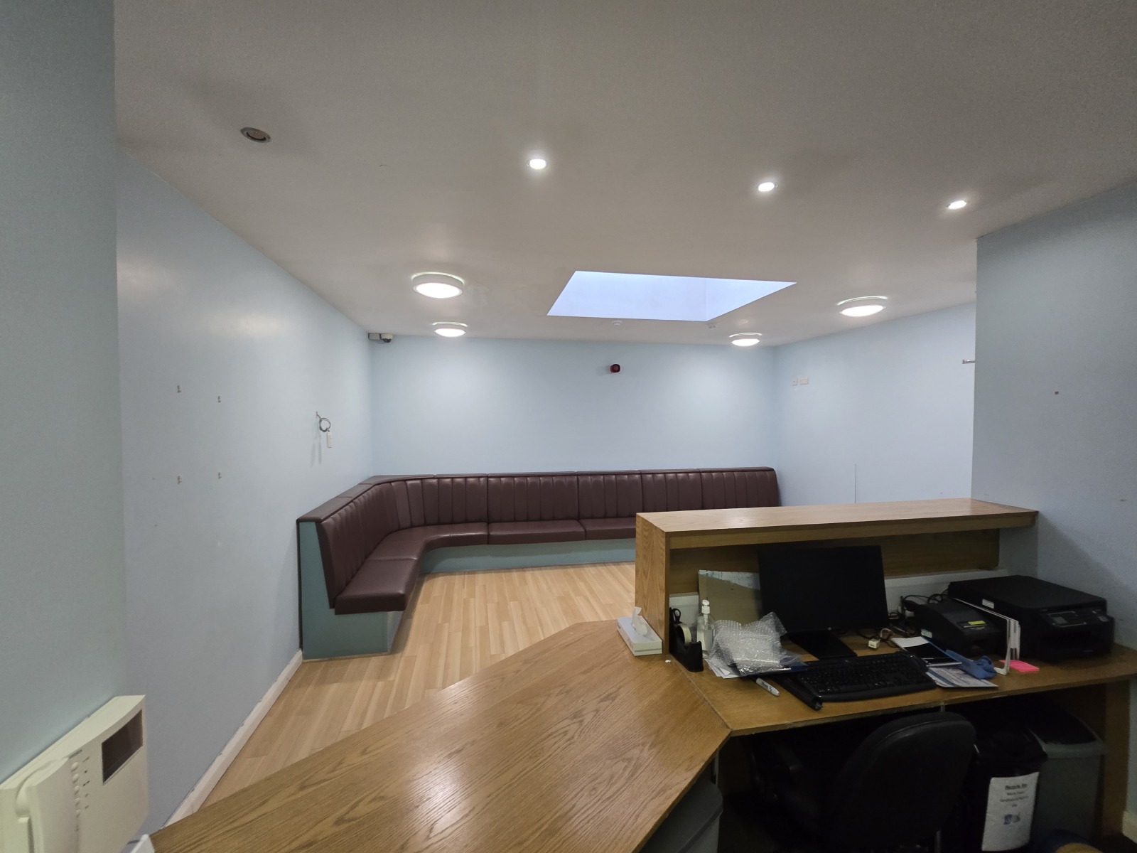 Laminate floor, CCTV, Velux Window, Bench Seating, in-built reception desk.