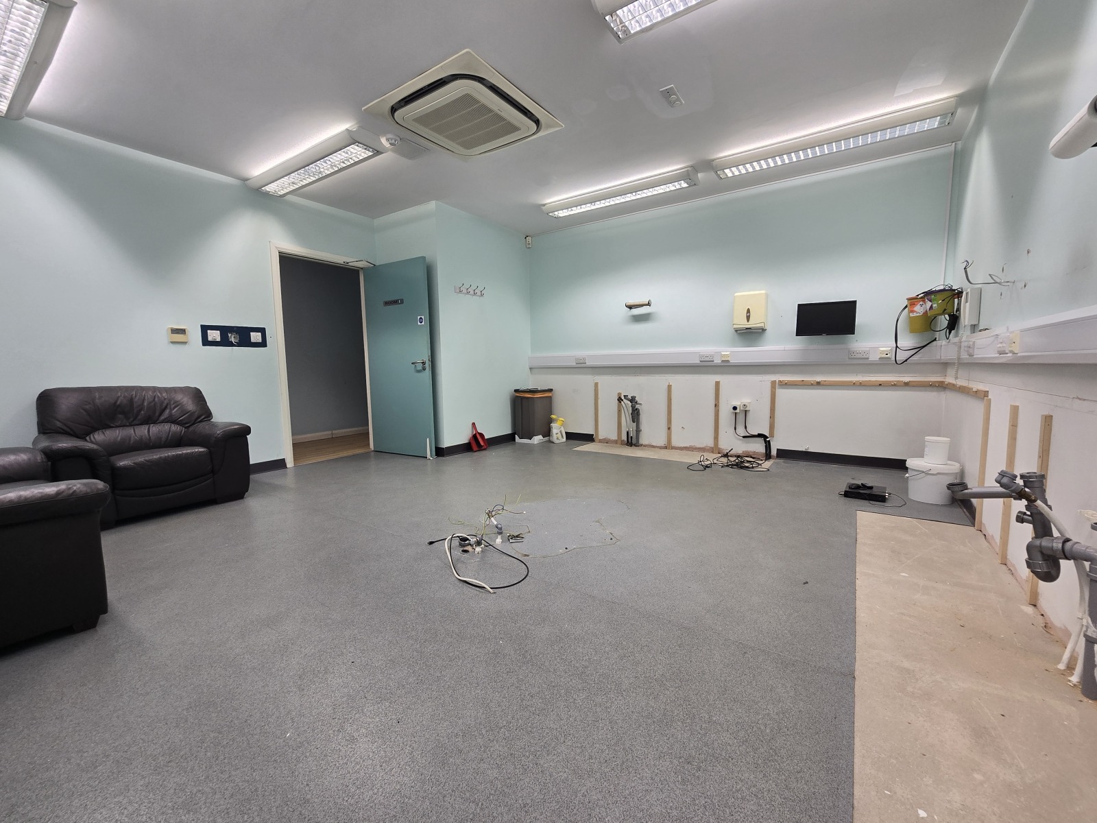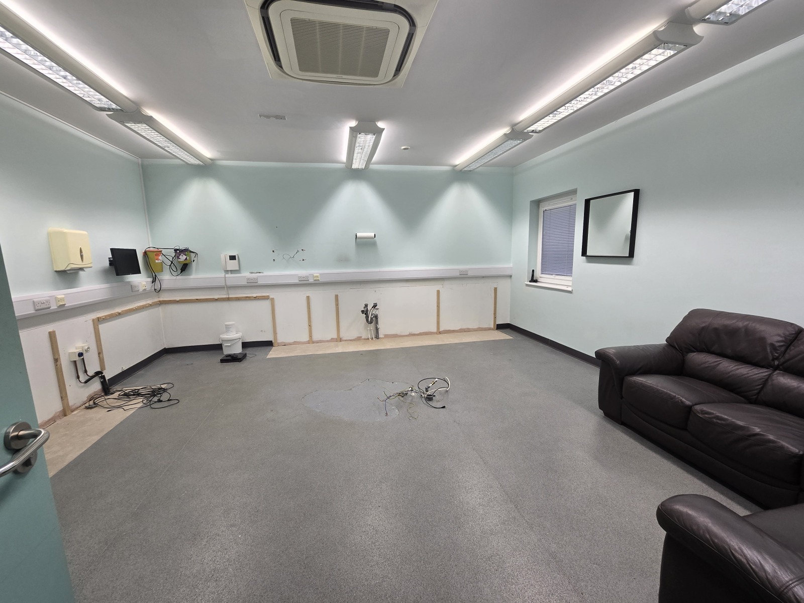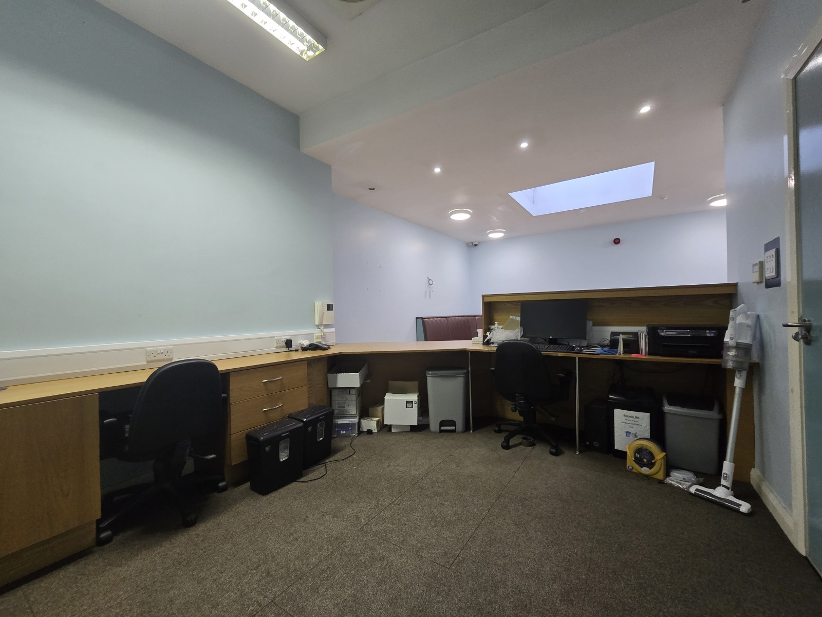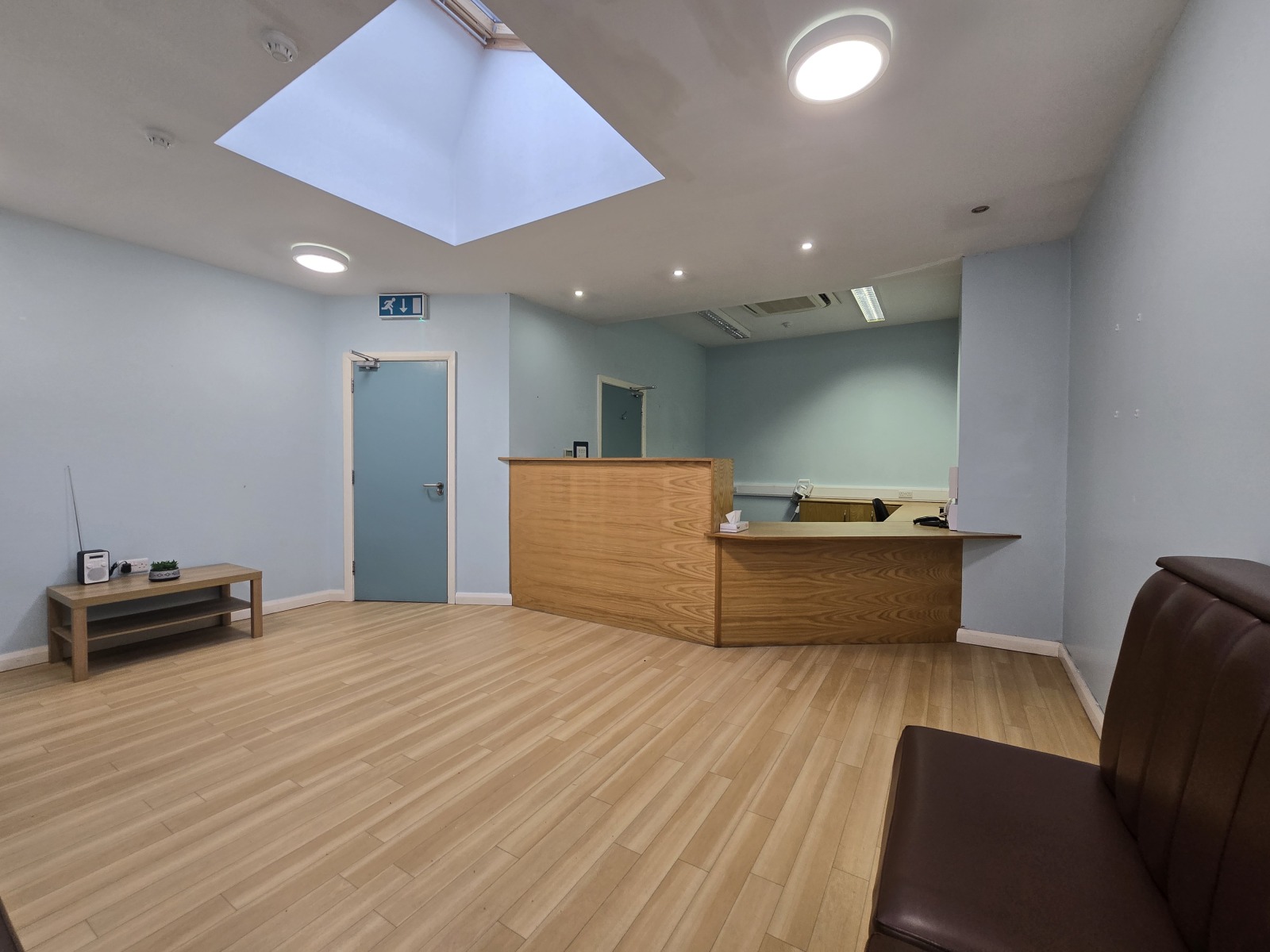 Laminate floor, CCTV, Velux Window, Bench Seating, in-built reception desk.