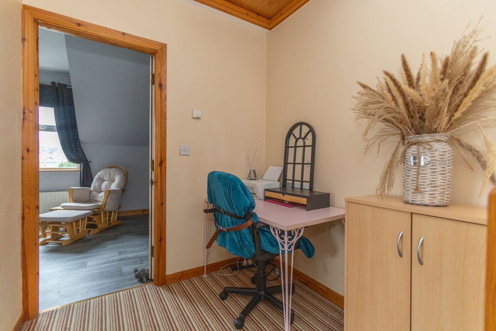 Located to fronf of property. Carpet flooring. Double radiator
