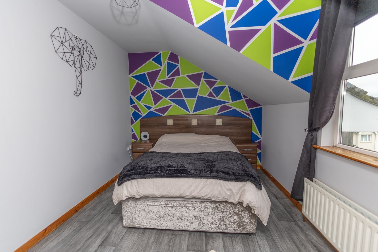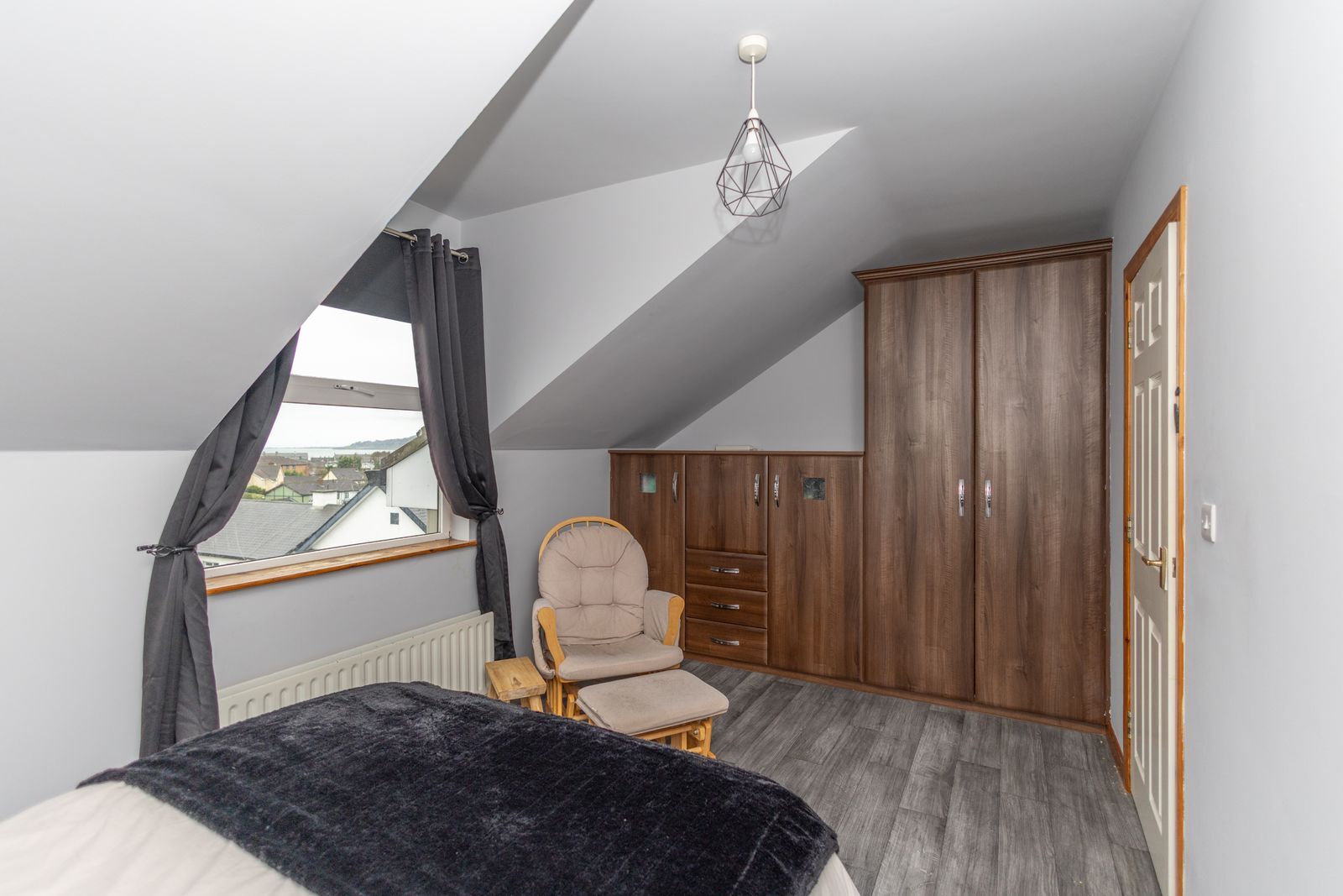 Located to rear of property. Built in wardrobes/drawers, also built in side lockers and headboard. Laminated flooring. Double radiator