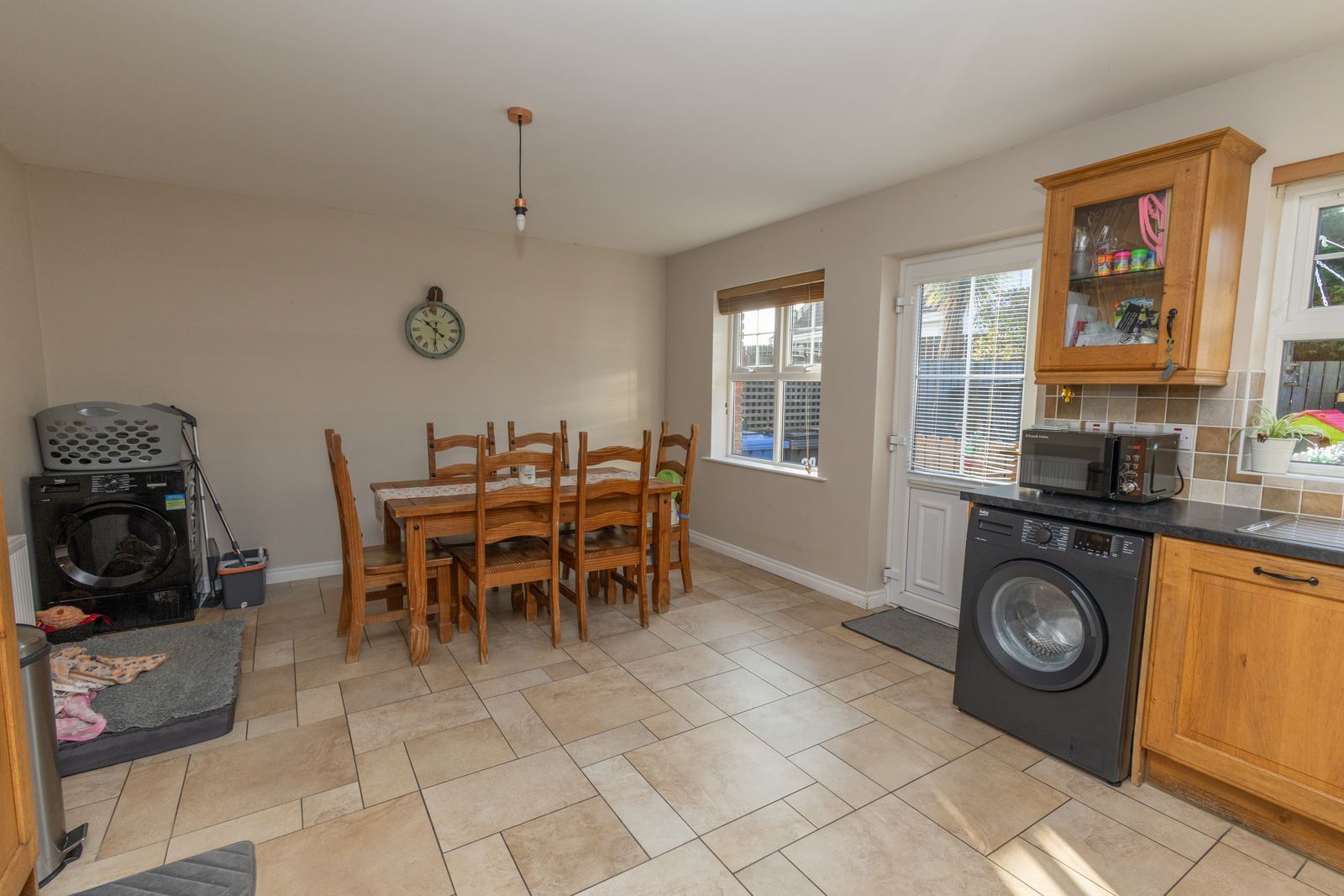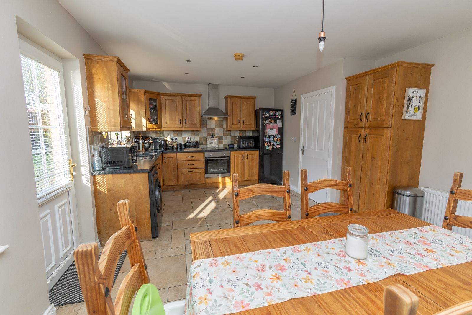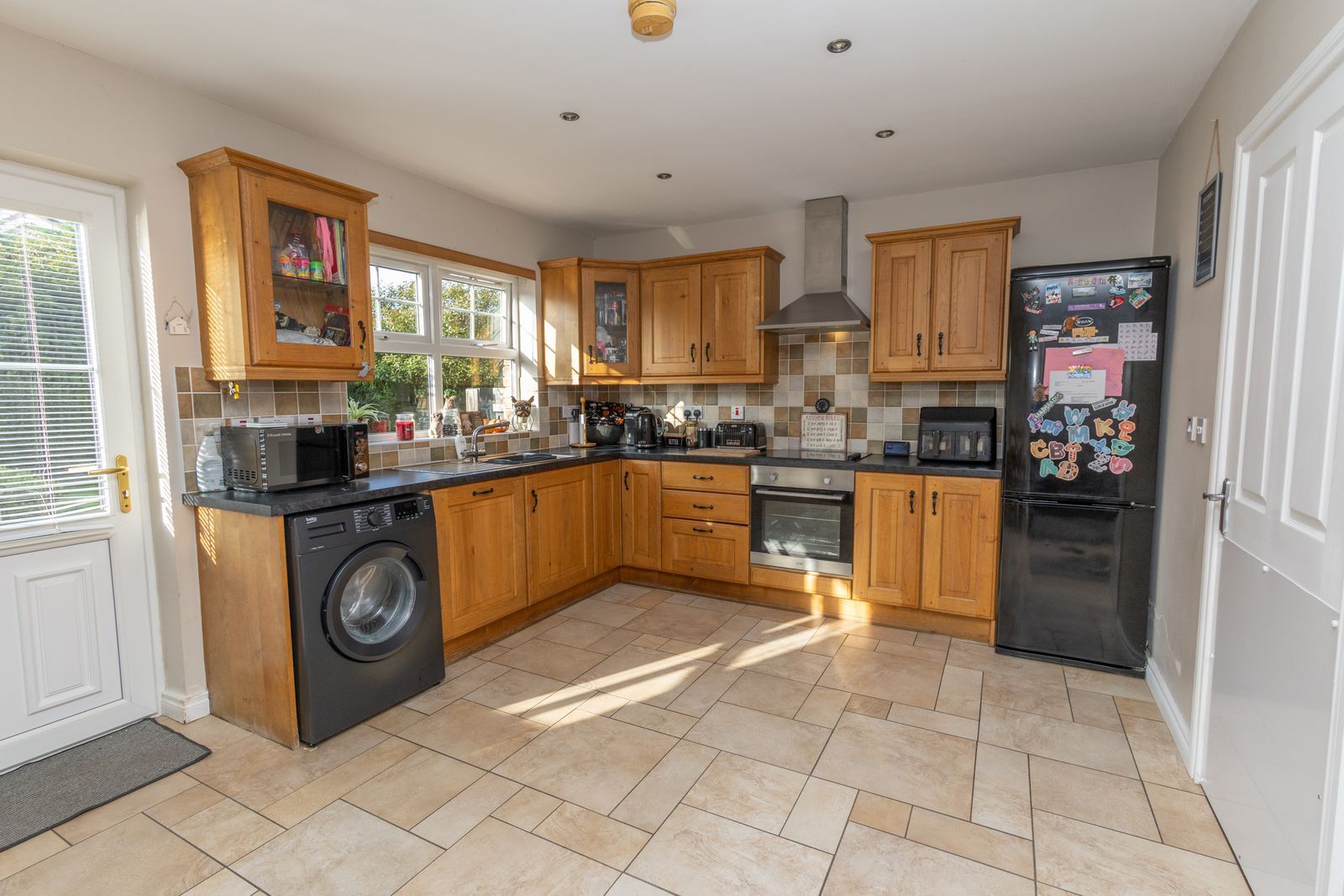 Tiled flooring. Partially tiled walls. Variety of high and low level units. Electric hob and oven with chrome extractor fan. Plumbed for washing machine.