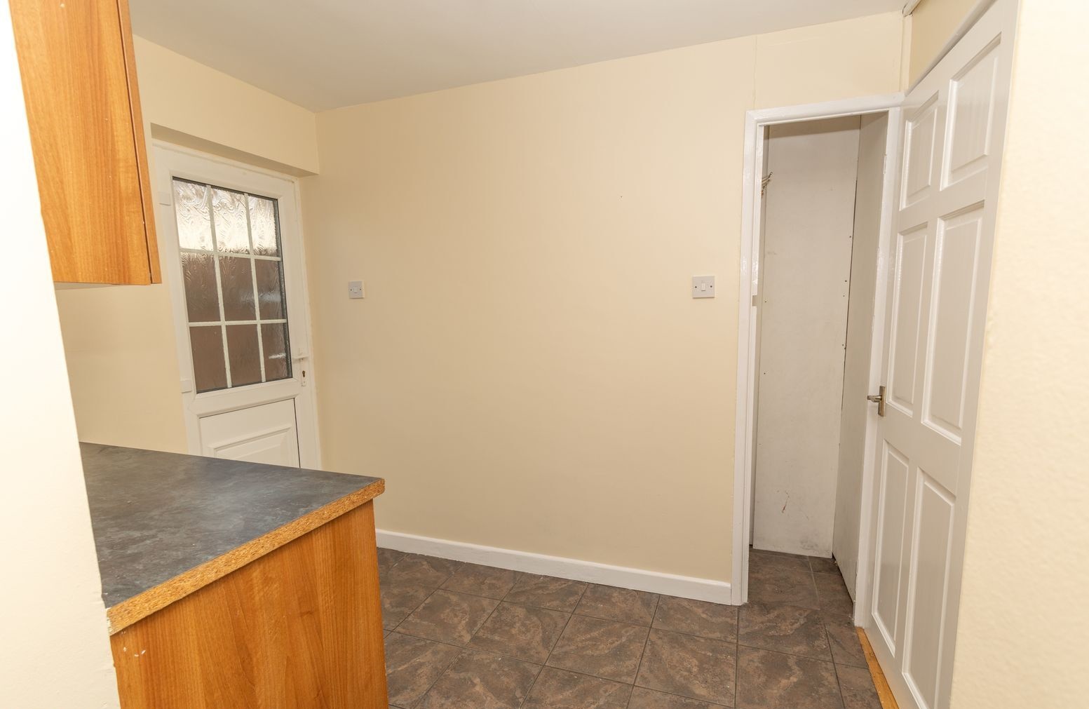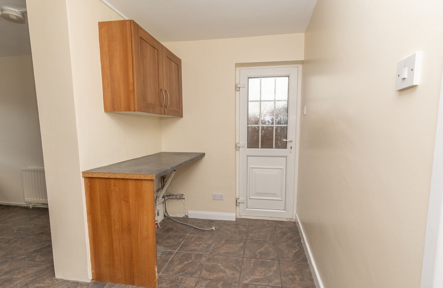 Plumbed for washing machine, Tiled flooring. Cupboard space. Small walk-in cupboard
