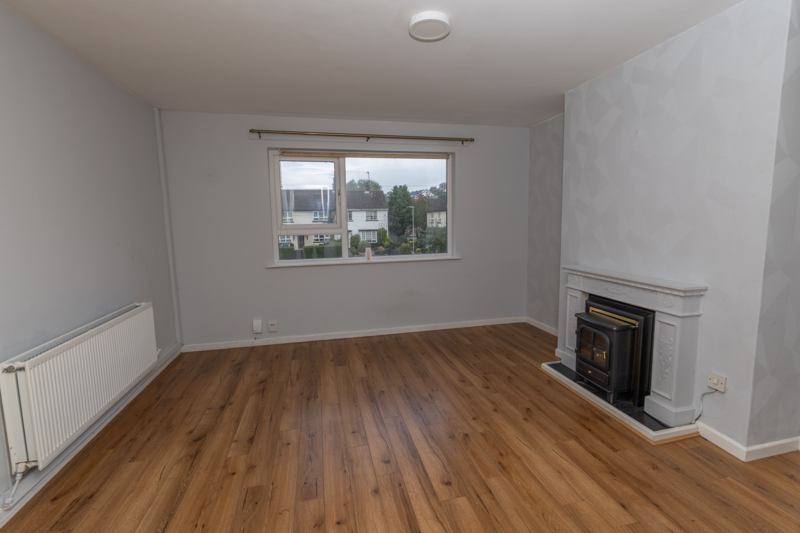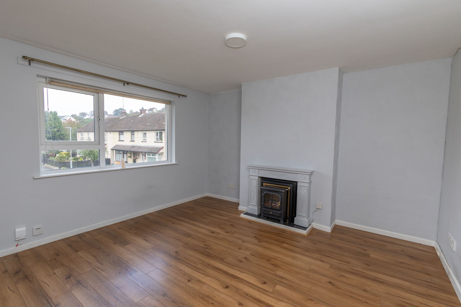 Wooden flooring. Mock fire with surround. Double radiator. 3 Double sockets
