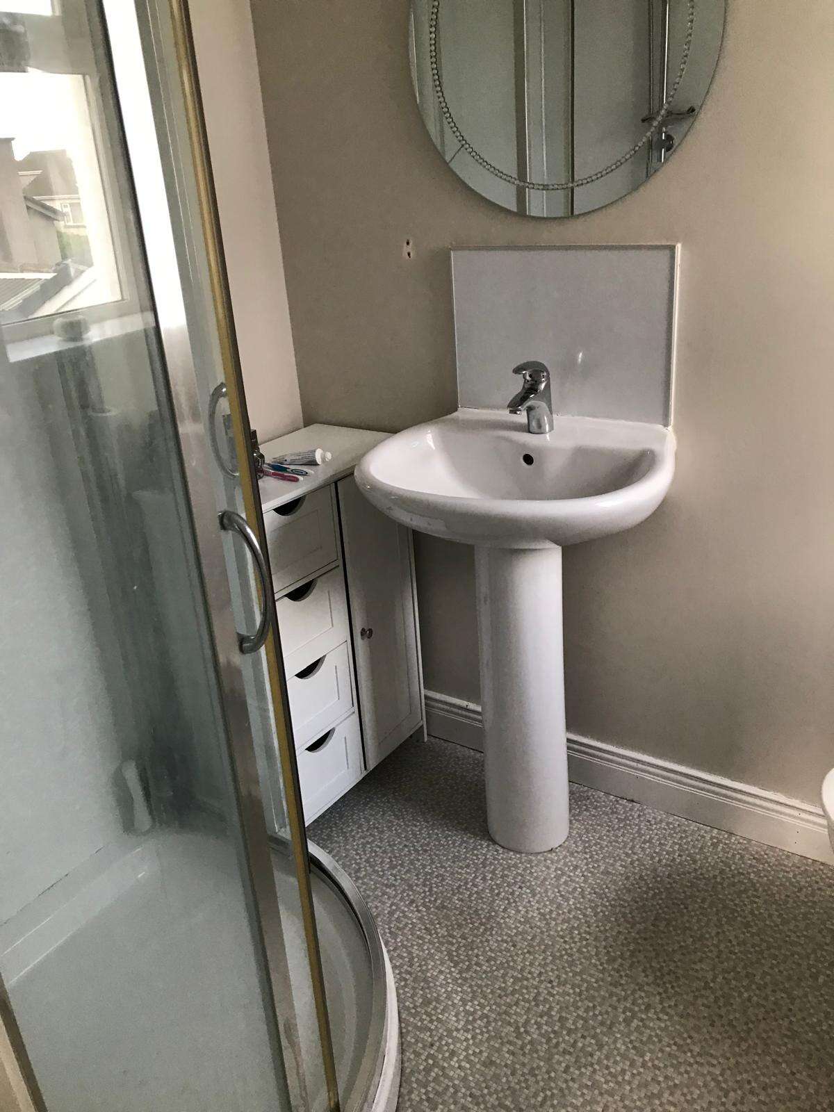 BEDROOM NO 1: 3.4m x 3.4m with wood panelled walls behind bed, wall mounted TV point. En-suite (2.0m x 1.4m) just off bedroom to include shower, toilet and wash hand basin.