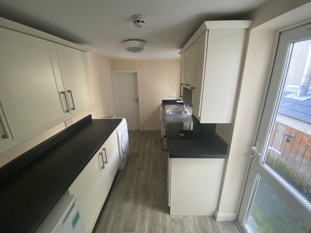 Having eye and low level units, 1 1/2 bowl stainless steel sink unit with mixer taps, integrated hob and electric oven, extractor hood, space for fridge, plumbed for washing machine, space for tumble dryer, understairs storage.
