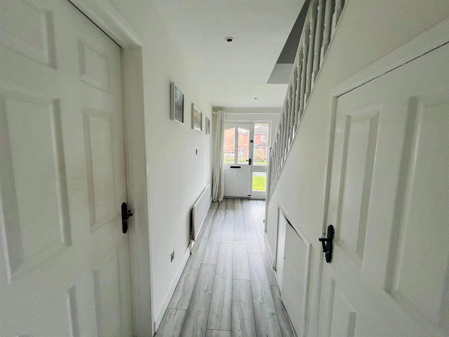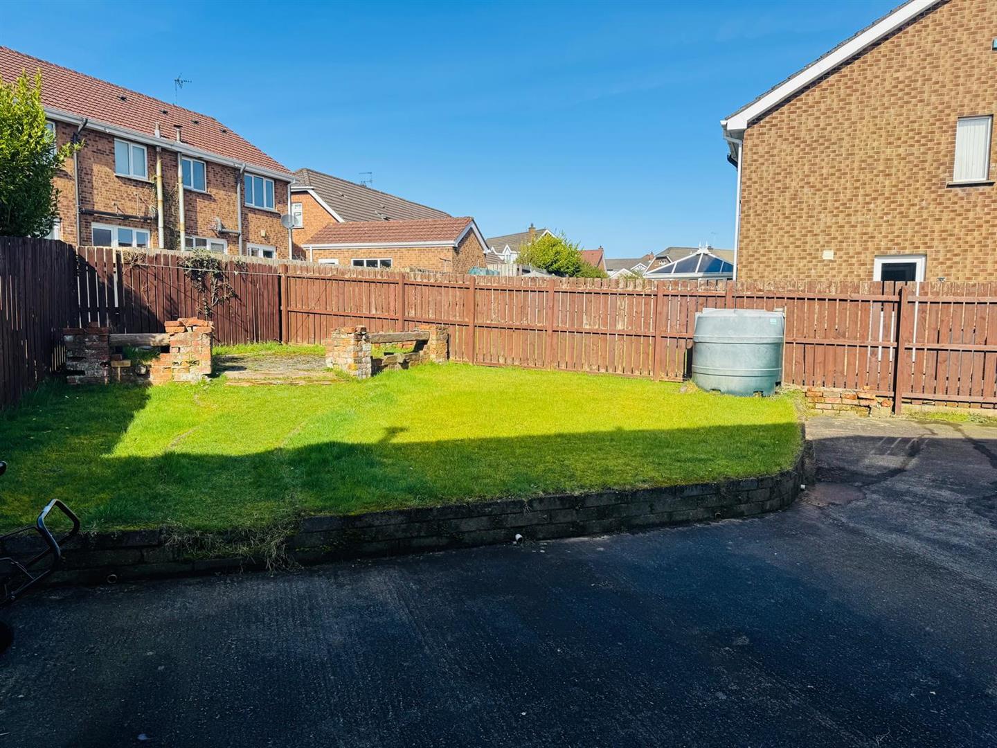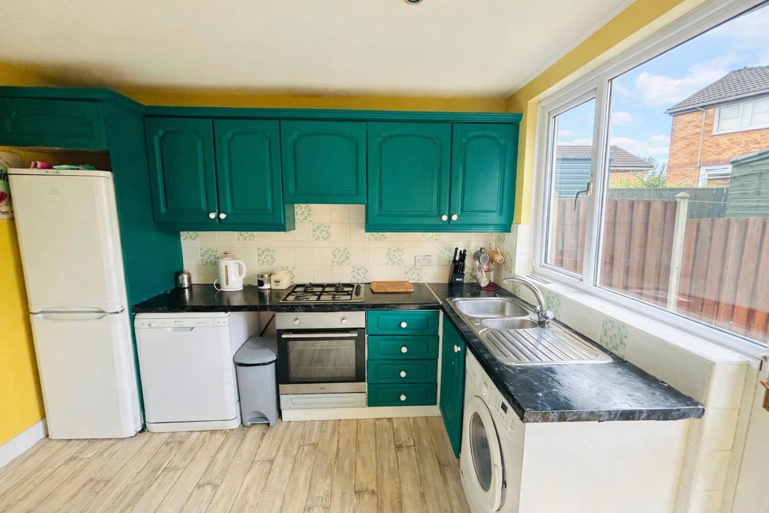 Having eye and low level units, tiling between units, 1 1/2 bowl single drainer stainless steel sink unit with mixer taps, gas hob, electric underoven, extractor fan, plumbed for washing machine, space for fridge/freezer, plumbed for dishwasher, recessed lighting.