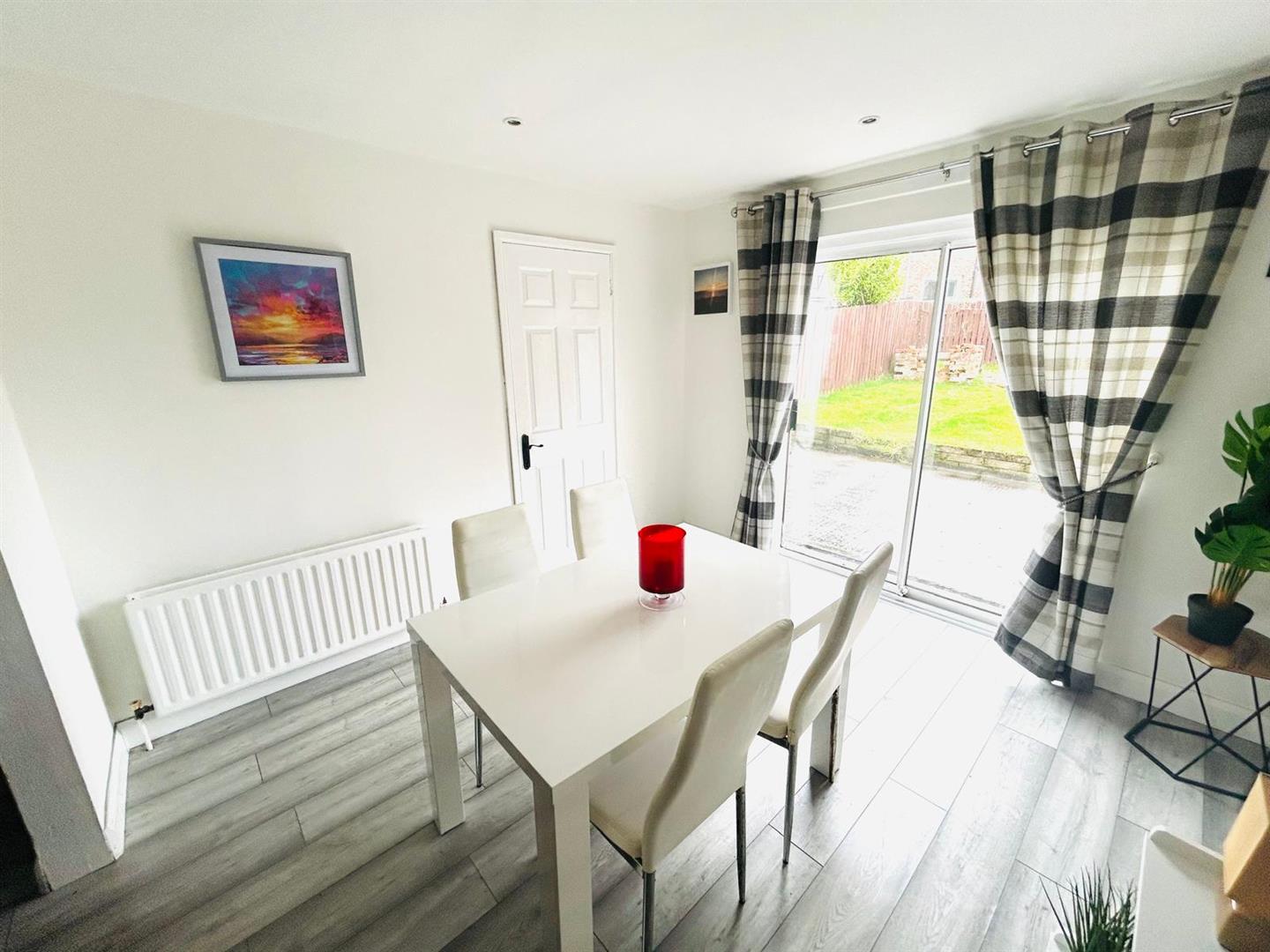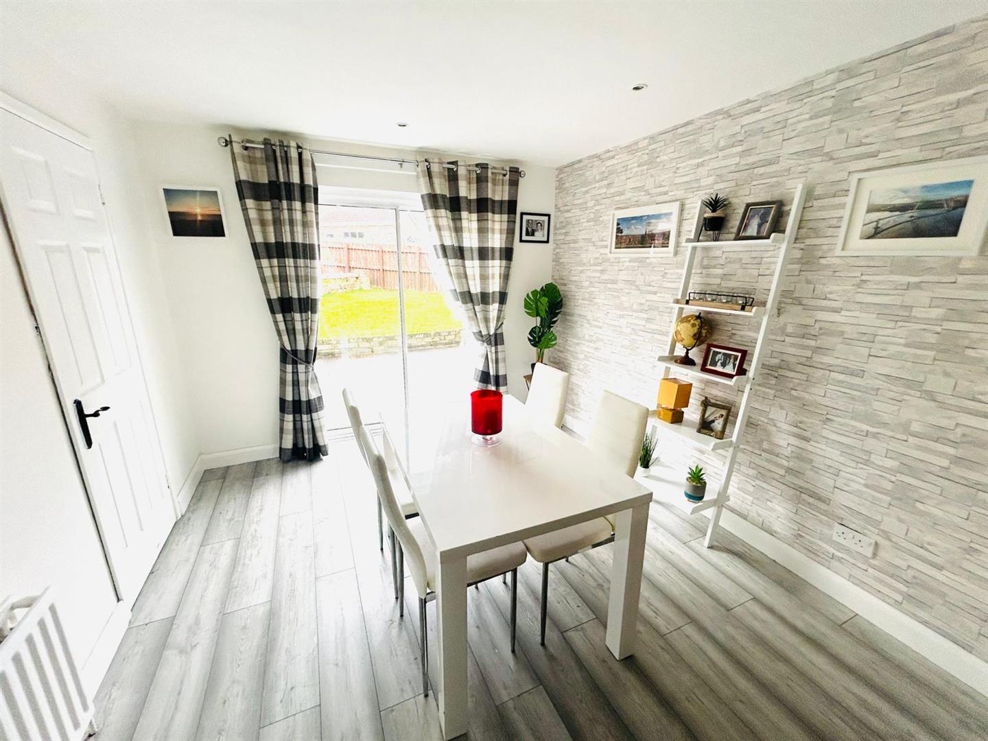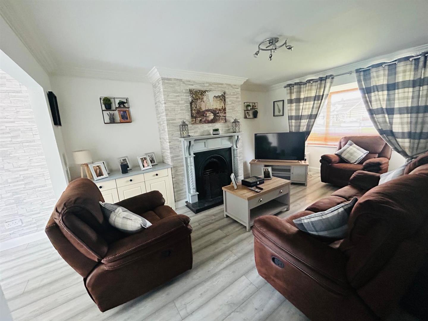 Having fireplace, ceiling corning to lounge area, recessed lighting to dining area, patio doors to rear.
