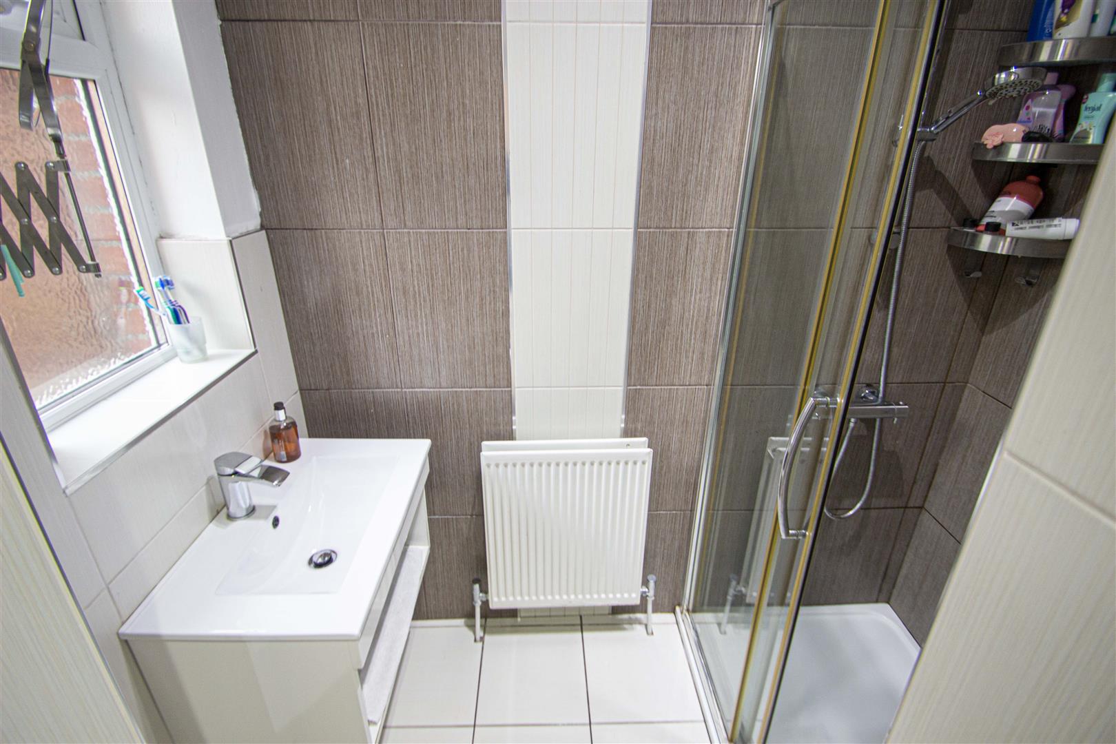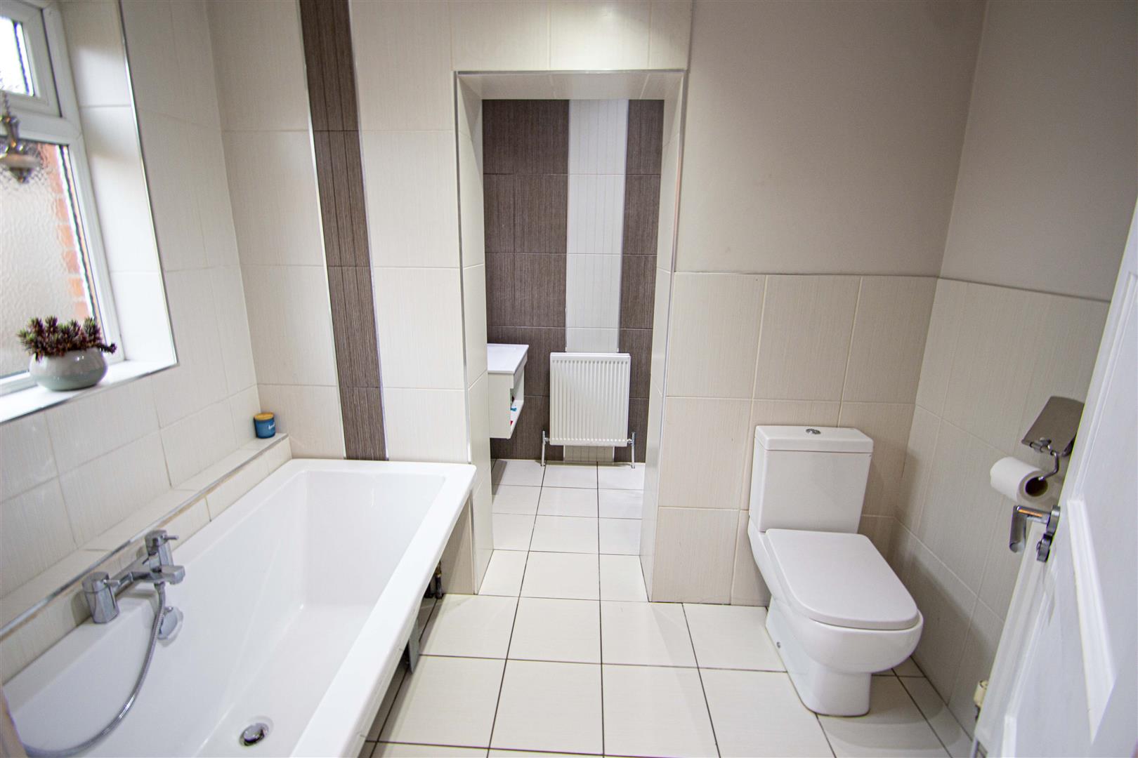 Bath with mixertaps, telephone hand shower, low flush w.c, wash hand basin, separate shower cubicle, thermostatically controlled shower unit, extractor fan, beautiful partially tiled walls.