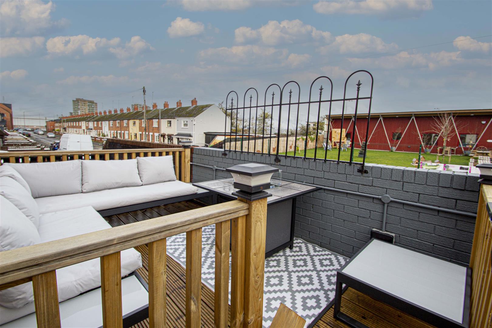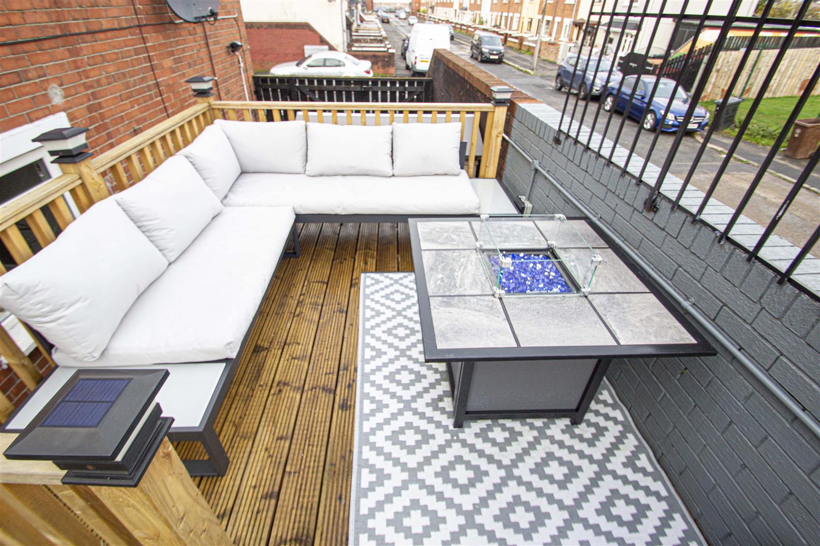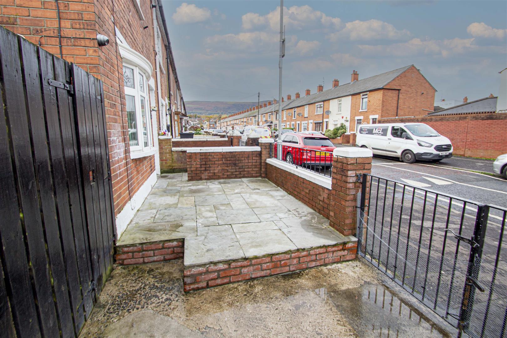 An extraordinary opportunity to purchase this beautifully presented and up-graded sizeable end of terrace with off road car-parking and fantastic doorstep convenience to include accessibility to the wider motorway network, the Royal Victoria Hospital and Boucher Road as well as the Park Centre and all of the abundance of amenities on the nearby Falls Road including excellent transport links/Glider service to name a few! Three bedrooms. Bright and airy living room with bay window. Luxury fitted kitchen open plan to dining space. Modern white bathroom suite with feature bath and separate shower cubicle. Feature raised decking/entreating area with beautiful views across to St. James community farm. Studio/storage facility with light and power. Gas central heating system. Upvc double glazing. Access from landing to roof-space for storage. A beautiful home with sizeable living space in this highly desirable location close to the city centre, St. Mary´s University College, and Belfast City Hospital, and we strongly recommend viewing to avoid disappointment.