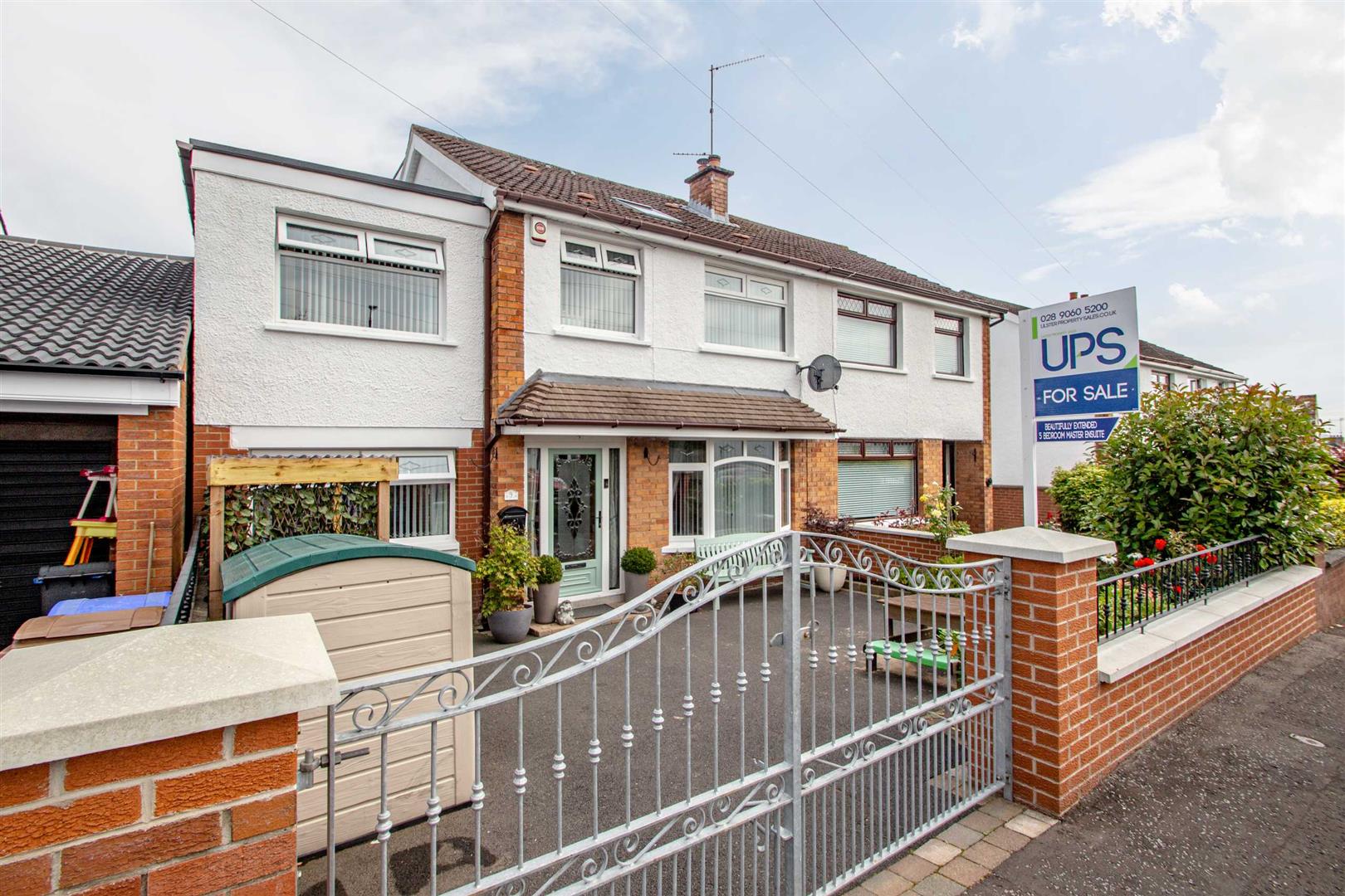 An extraordinary, extended semi detached home that offers superb family living space extending to over 1700sq ft! With proximity to lots of schooling, amenities, and transport links to include the Railway and all the plentiful nearby amenities in Andersonstown and Finaghy, this unique and well-appointed home is a star buy! Five excellent bedrooms. Master bedroom with luxury, contemporary ensuite shower room and bedroom five with ensuite w.c. Two plus reception rooms to include a magnificent extended kitchen with Gorenje appliances and superb dining/entertaining space, family room with feature storage and lounge with bay window, herringbone effect floor and wood burning stove. Separate utility room. White bathroom suite on first floor with beautiful tiling. Welcoming and bright entrance hall with feature herringbone effect floor. Gas central heating system. Upvc double glazing. Privately enclosed, easily maintained rear garden benefitting from an attractive open aspect over well maintained private playing fields and additional covered seating area. Workshop with light and power. A one of opportunity to purchase this outstanding home with contemporary family orientated accommodation that can be very difficult to find, we strongly recommend viewing to avoid disappointment.