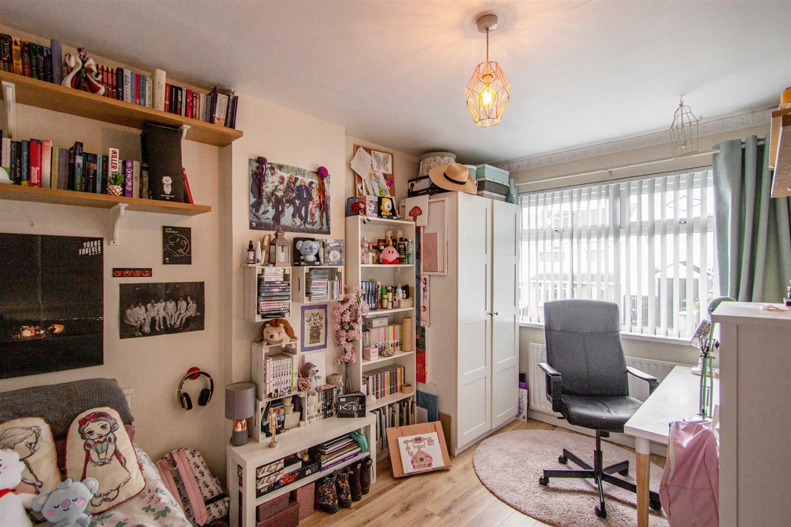 Wooden effect strip floor, beautiful views, build-in slide robes.