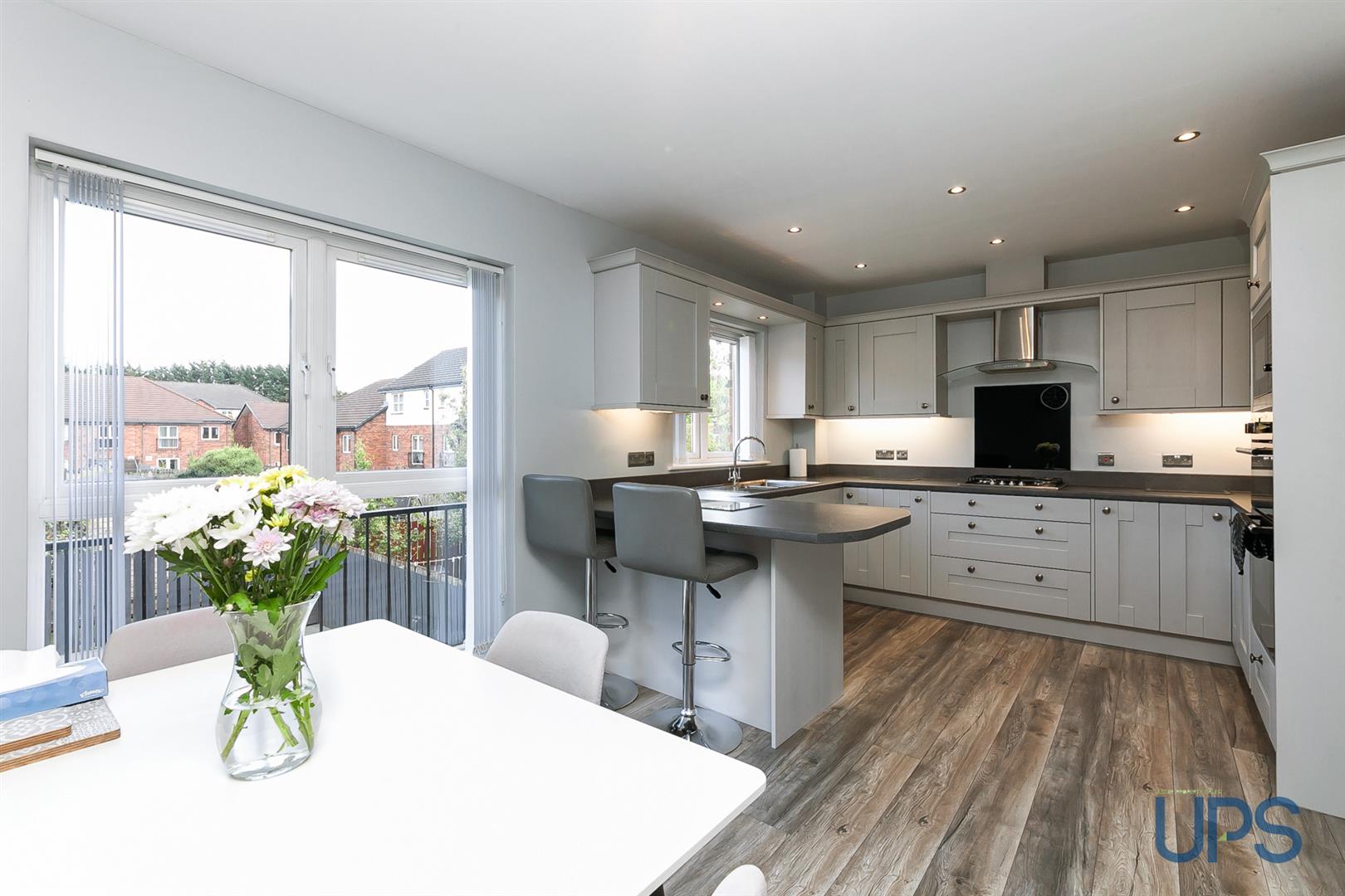 Newly installed luxury fully fitted kitchen open to a sizeable dining area.
