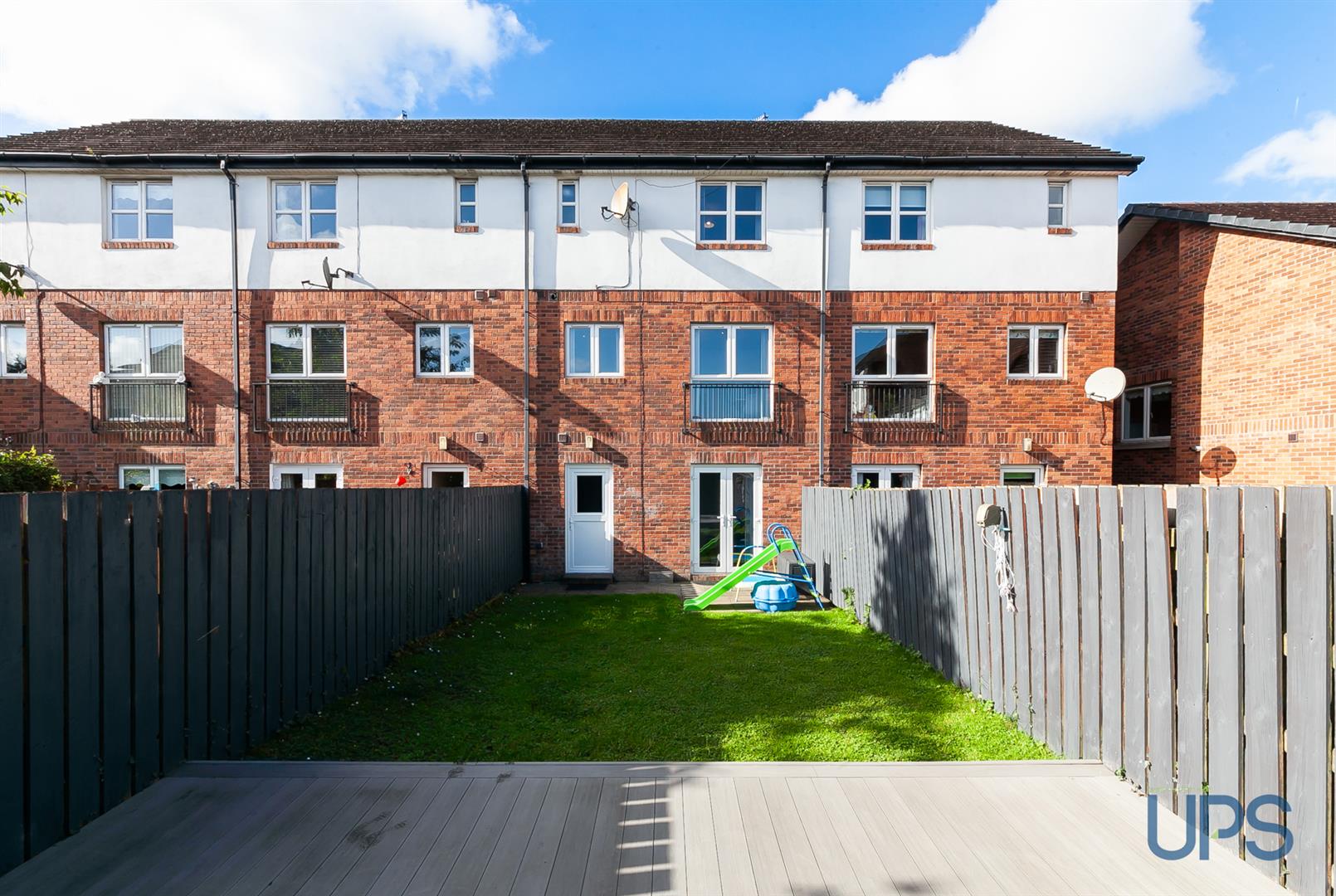 A superior, well maintained and presented, substantial town house within this established, residential development off the increasingly popular Blacks Road. Four excellent, bright double bedrooms. Principle bedroom with newly installed luxury ensuite shower suite. One excellent reception room with feature double doors to a south facing balcony. Newly installed luxury fully fitted kitchen open to a sizeable dining area. Newly fitted utility room / downstairs cloakroom / w.c. Upvc double glazed windows / doors / feature composite front door / feature automated roller door. Newly installed luxury white bathroom suite. Gas fired central heating system. Integral garage / currently converted to office / playroom accommodation. Further w.c on landing. Feature floor coverings. Private landscaped rear gardens.