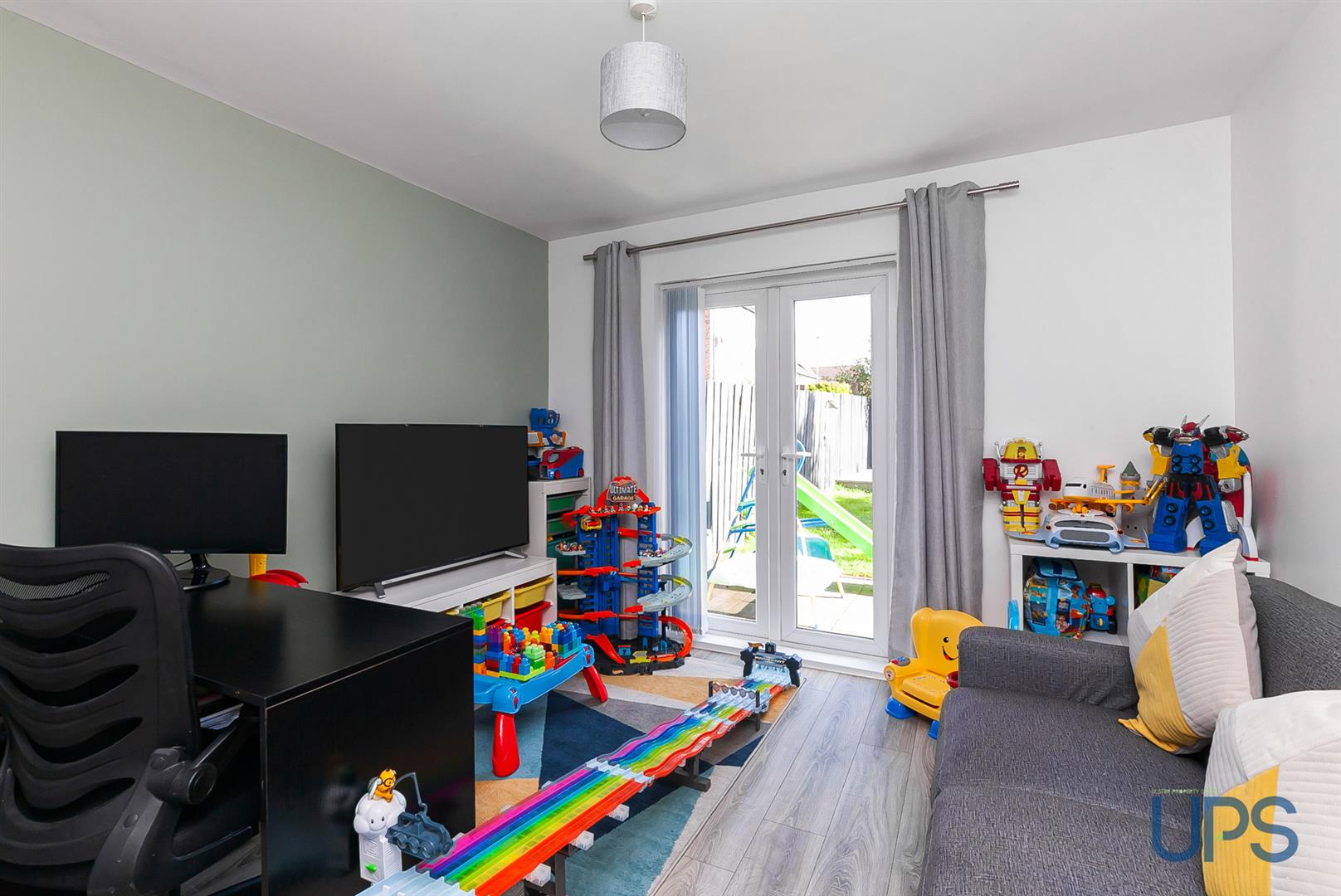 Integral garage / currently converted to office / playroom.