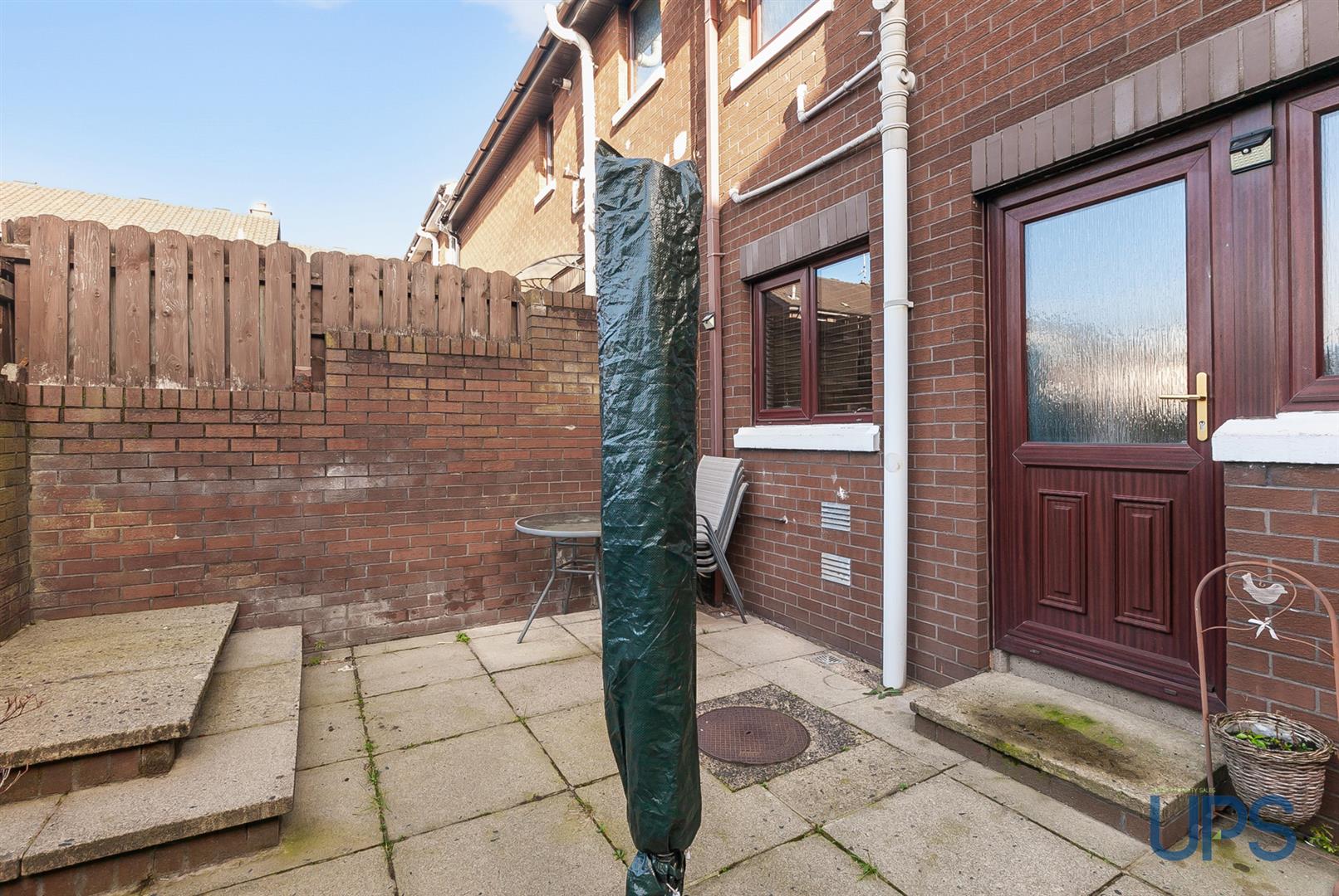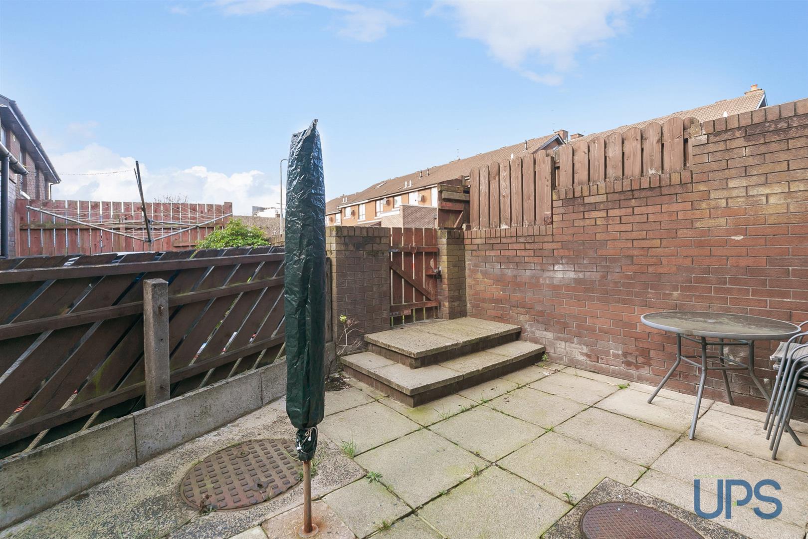 Rear enclosed yard, fencing and secure with flagging, feature railings to front.