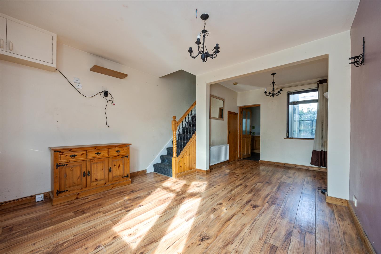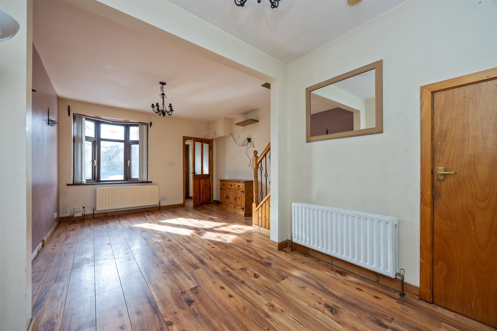 Entrance porch leading to a large living room and fitted kitchen.