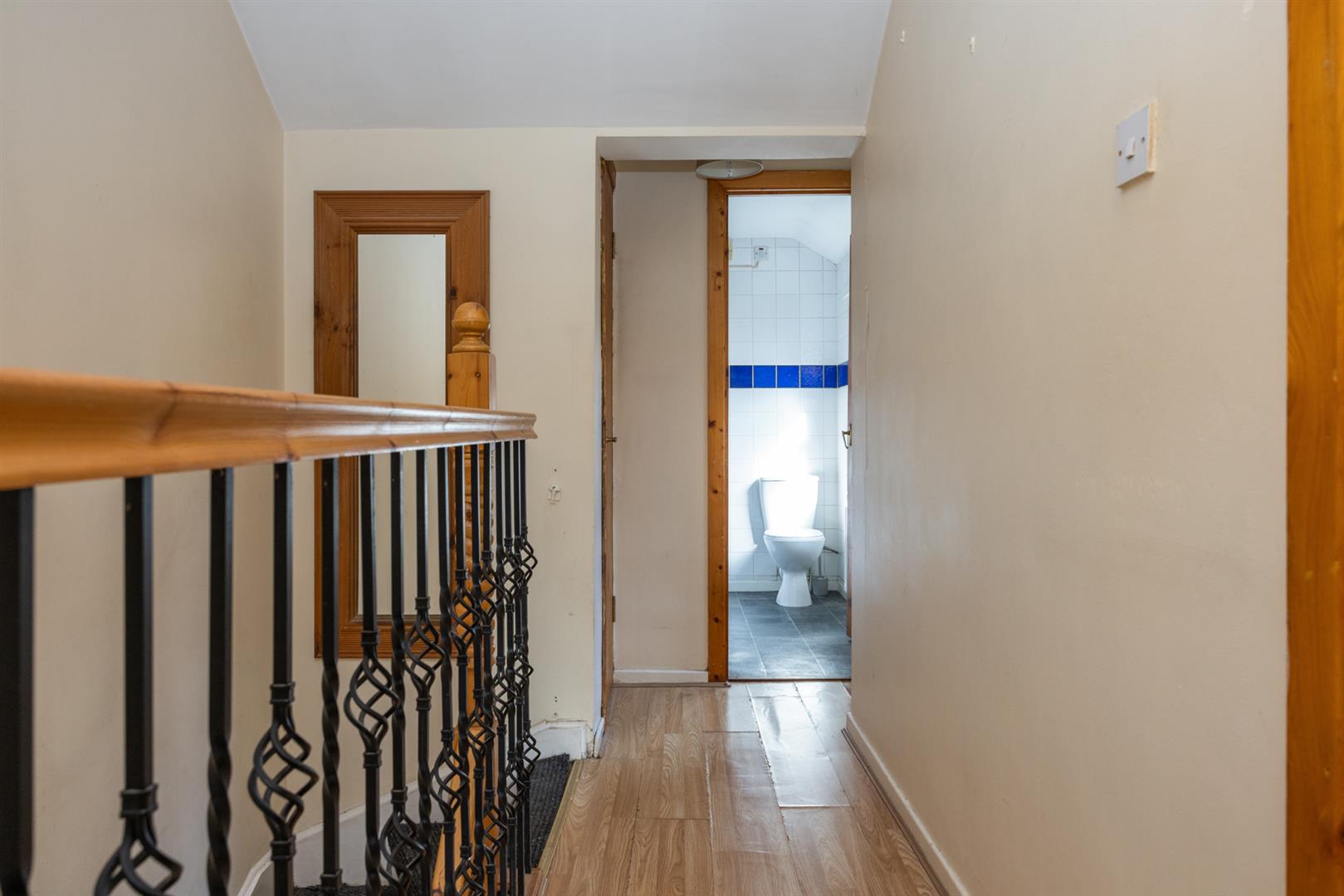Two bedrooms and a white bathroom suite on the first floor.