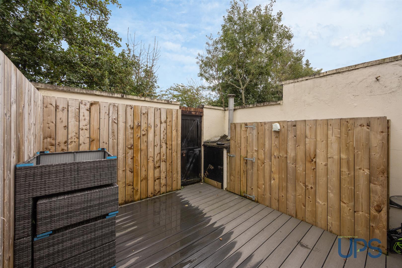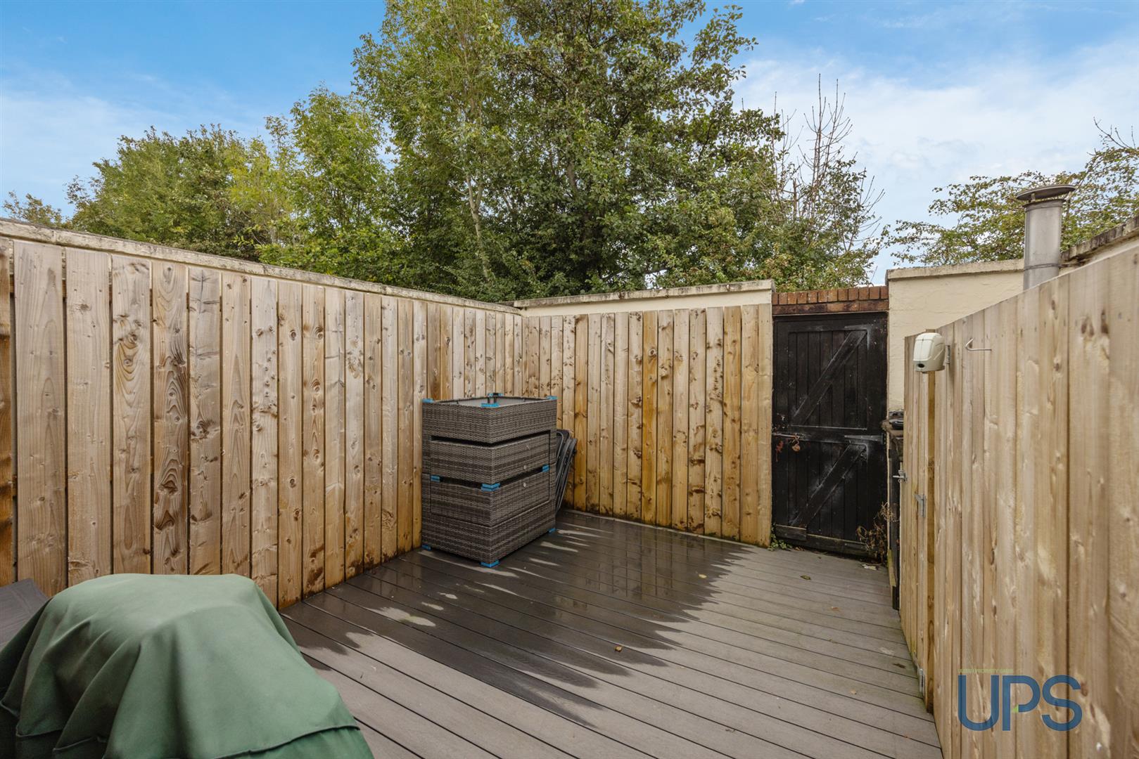 Enclosed, secure and private to rear with feature composite decking and fencing, housed oil fired boiler. Feature walled area to front.