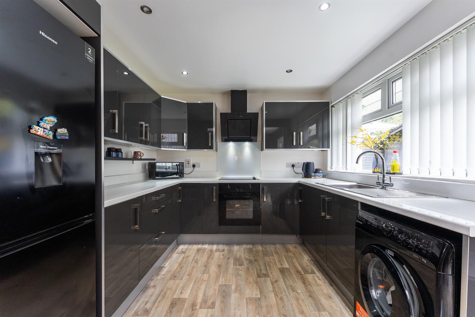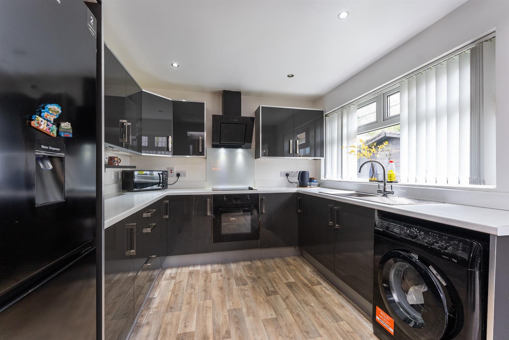 CONTEMPORARY HIGH GLOSS FITTED KITCHEN / DINING AR 12'5 X 9'8 (3.78m X 2.95m)
