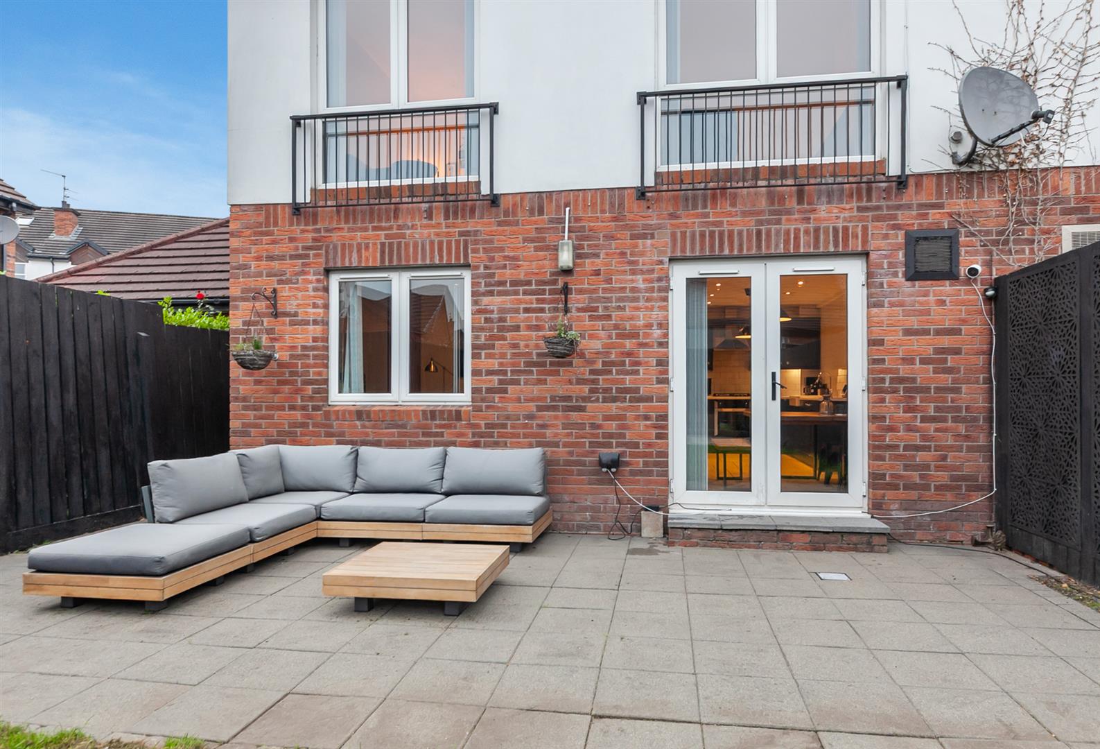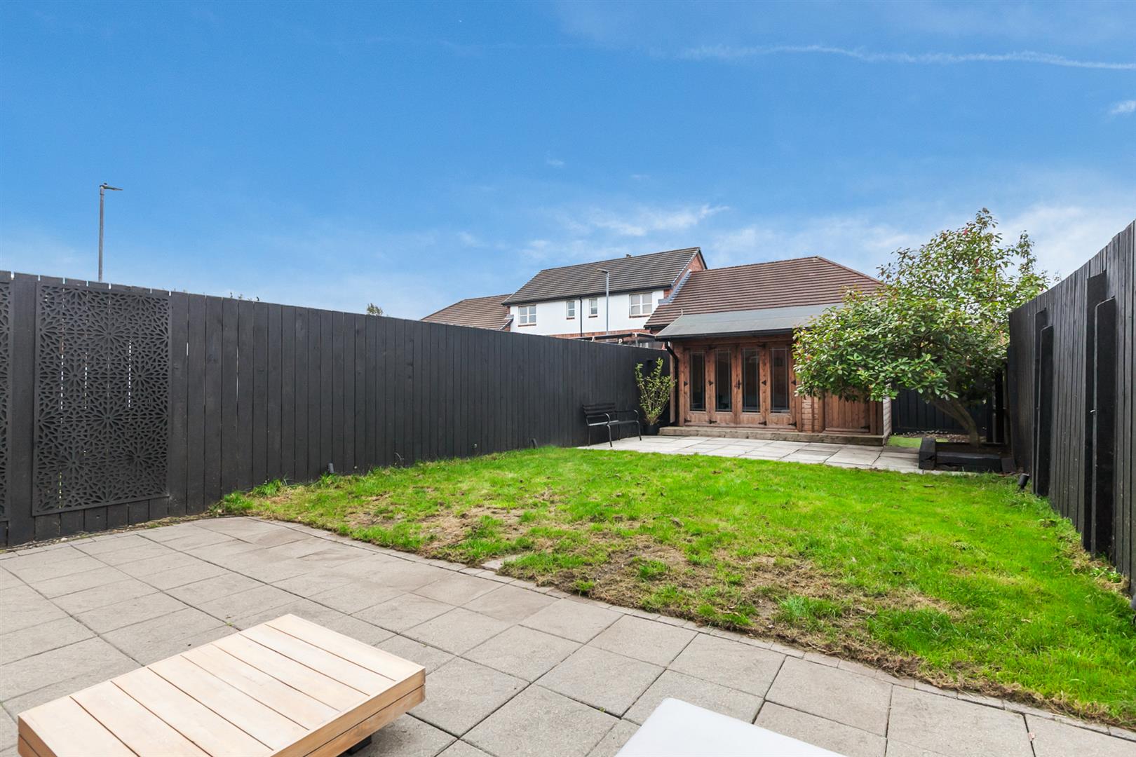Double car parking spaces to front while extensive landscaped, secure gardens to rear, lawned, flagging with fencing.