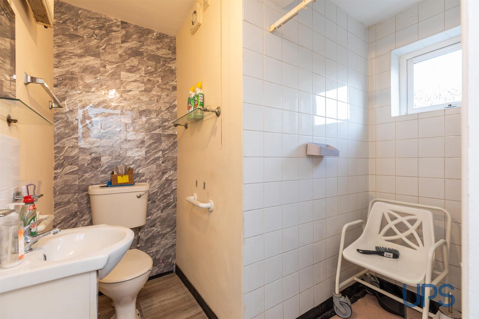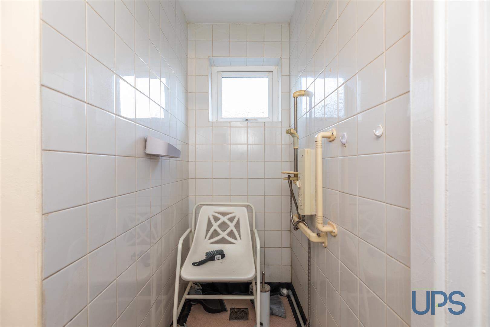 Shower facility, electric shower unit, low flush w.c, wash hand basin, partially tiled walls, extractor fan.