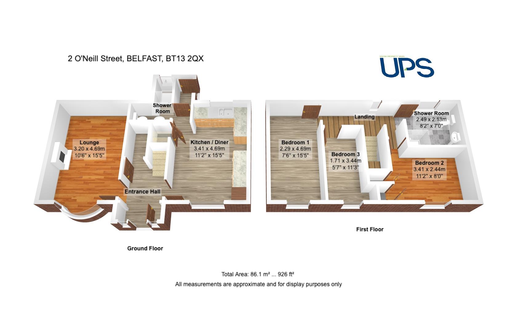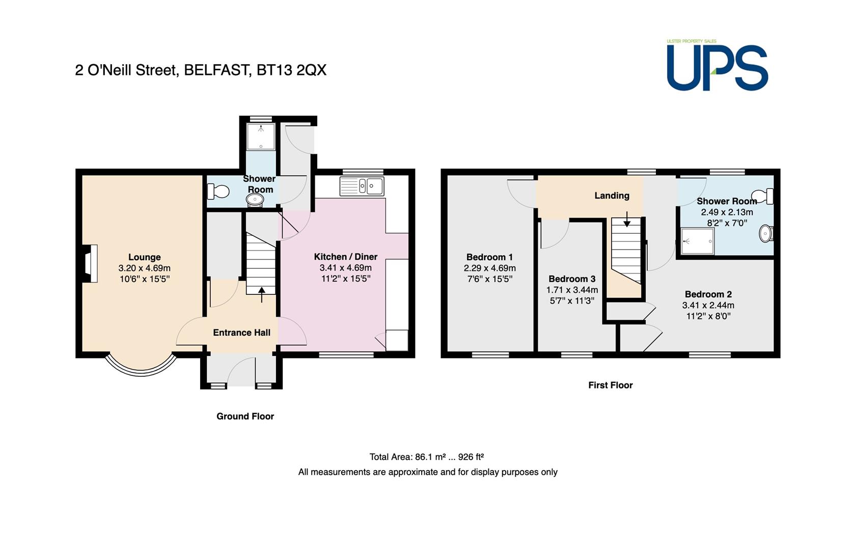 Extending to an impressive 926 square feet, the property benefits from a higher-than-average energy efficiency rating, with an EPC of C (69). The accommodation is well appointed and thoughtfully laid out. There are three bedrooms and a shower room on the first floor. The ground floor features a welcoming entrance hall, a bright and airy living room with a bay window that enhances natural light, and a fitted kitchen open plan to a spacious dining area - ideal for modern living. A practical downstairs wet room adds further convenience.