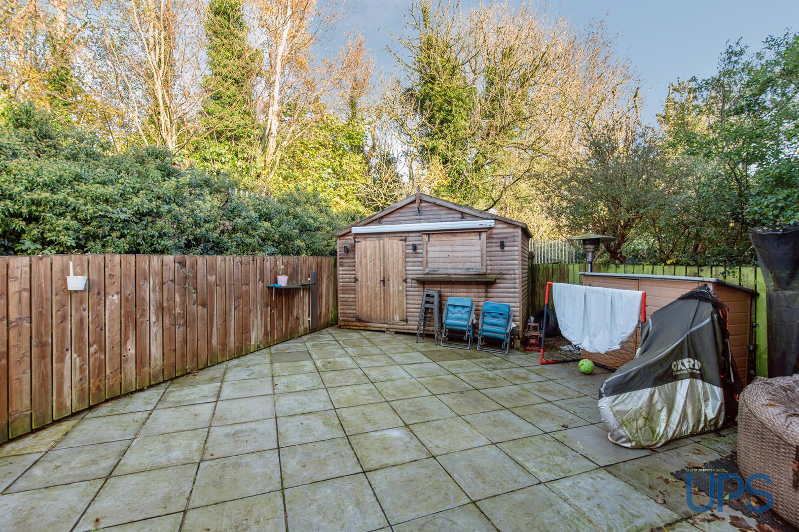 Feature open space top front with gates. Private and secure rear garden with flagging and fencing.