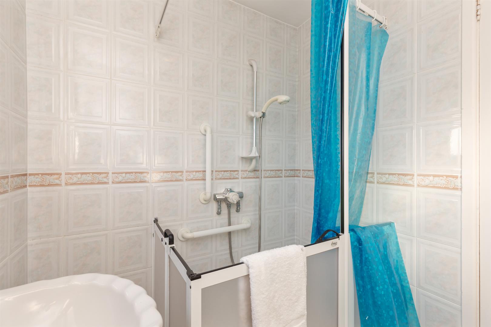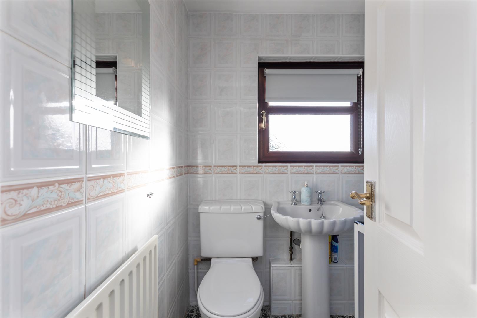 Feature Shower facility, low flush w.c, sink unit, tiling.