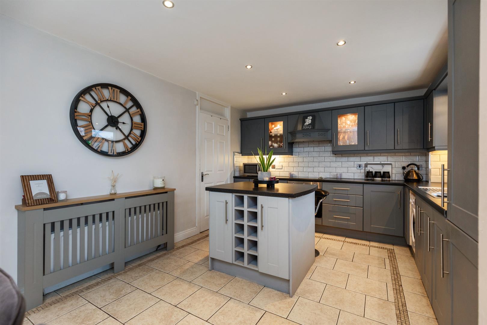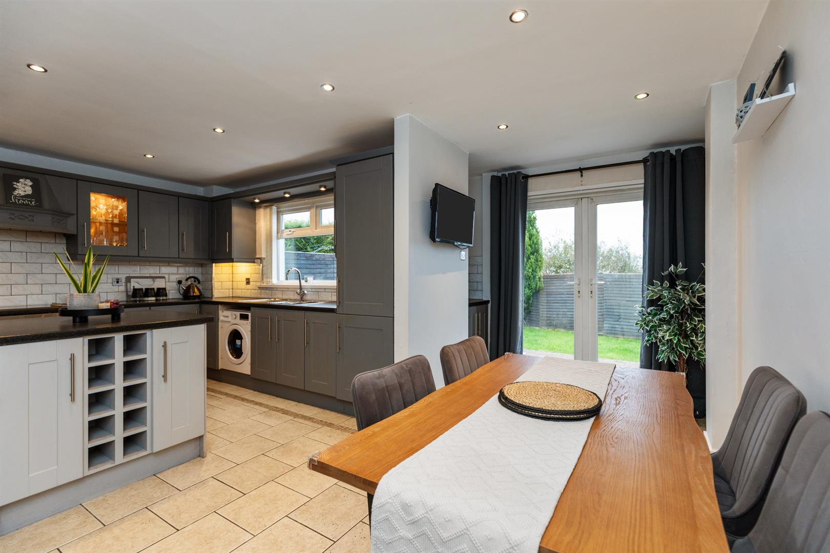 Excellent range of high and low level units, single drainer stainless steel 1 1/2 bowl sink unit, illuminated display cabinets, built-in hob and underoven, extractor canopy, beautiful partially tiled walls, under unit lighting, integrated fridge and freezer, island with seating space, spotlights, excellent storage cupboard, open pan to sizeable dining / entertaining space, feature island. Upvc double glazed double doors to garden.