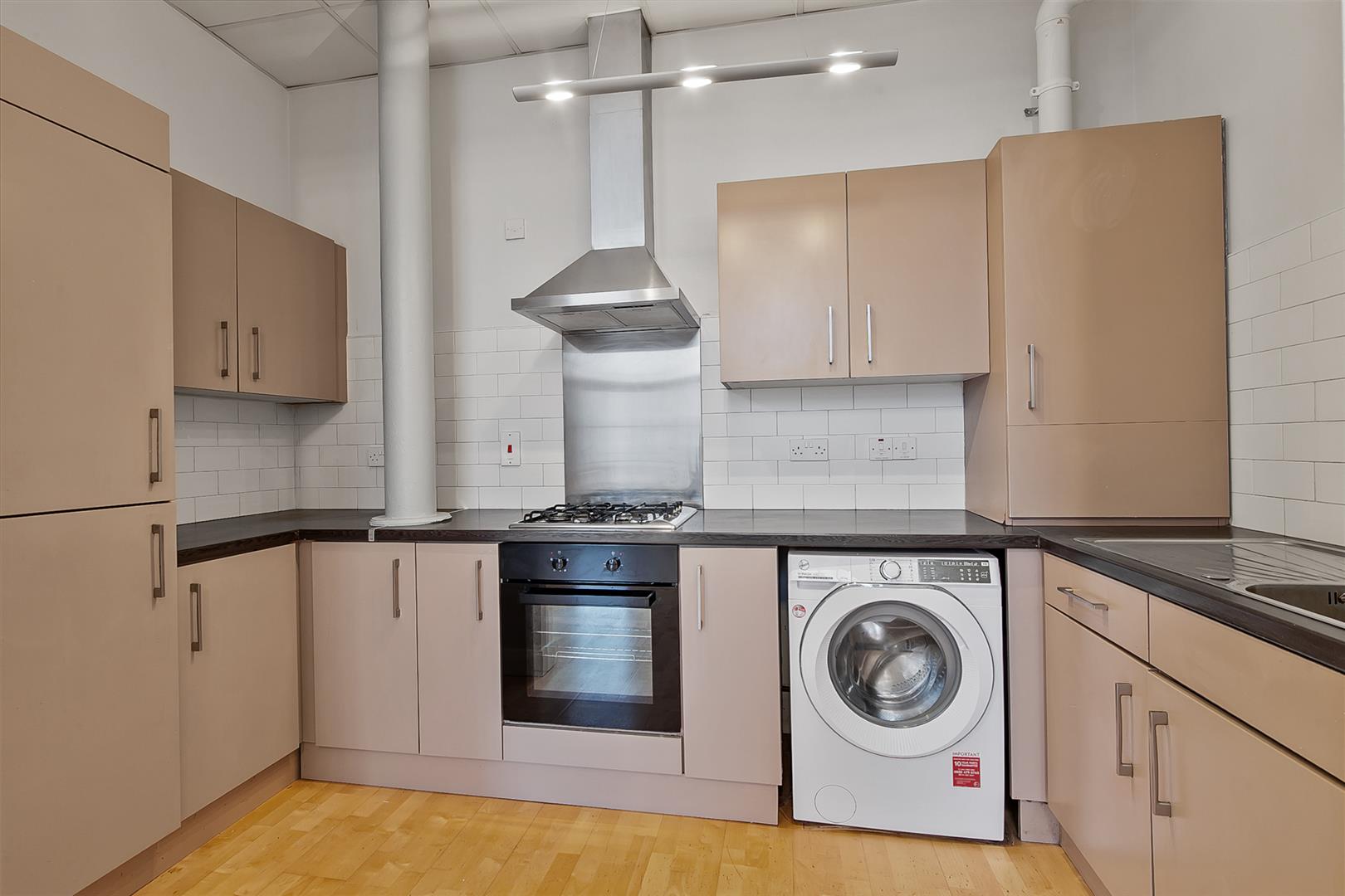 Range of high and low level units, formica work surfaces, 4 ring gas hob, underoven, overhead extractor hood, plumbed for washing machine.