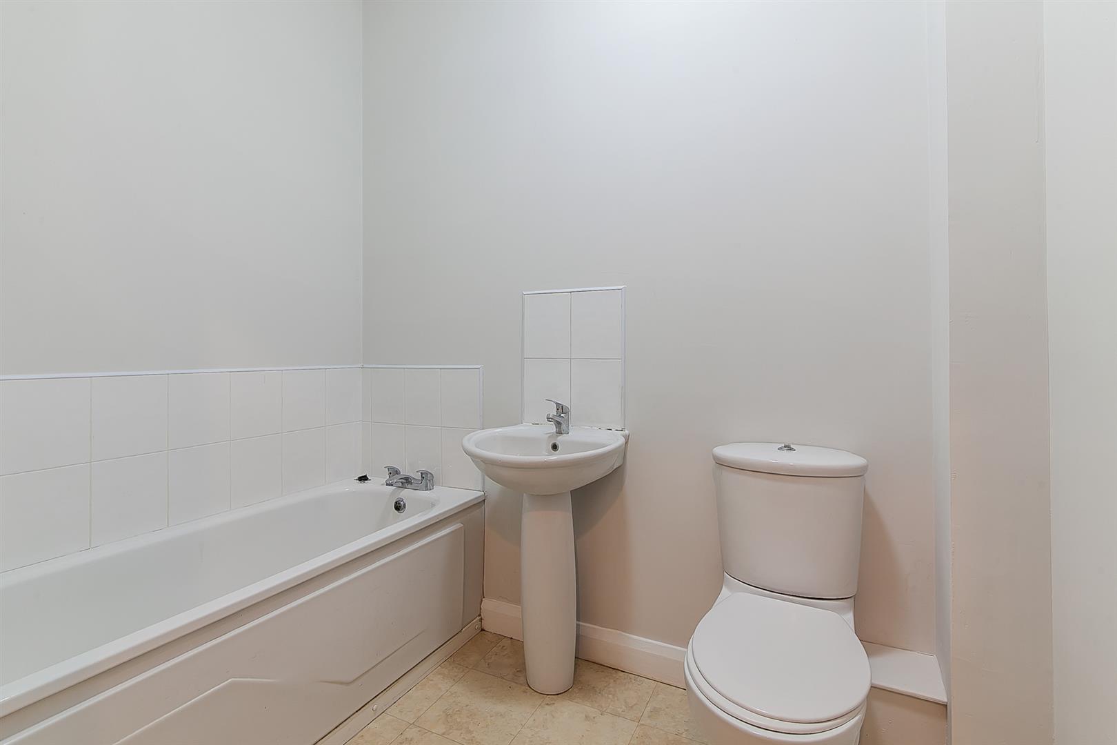 Panelled bath, pedestal wash hand basin, low flush w.c, tiling.