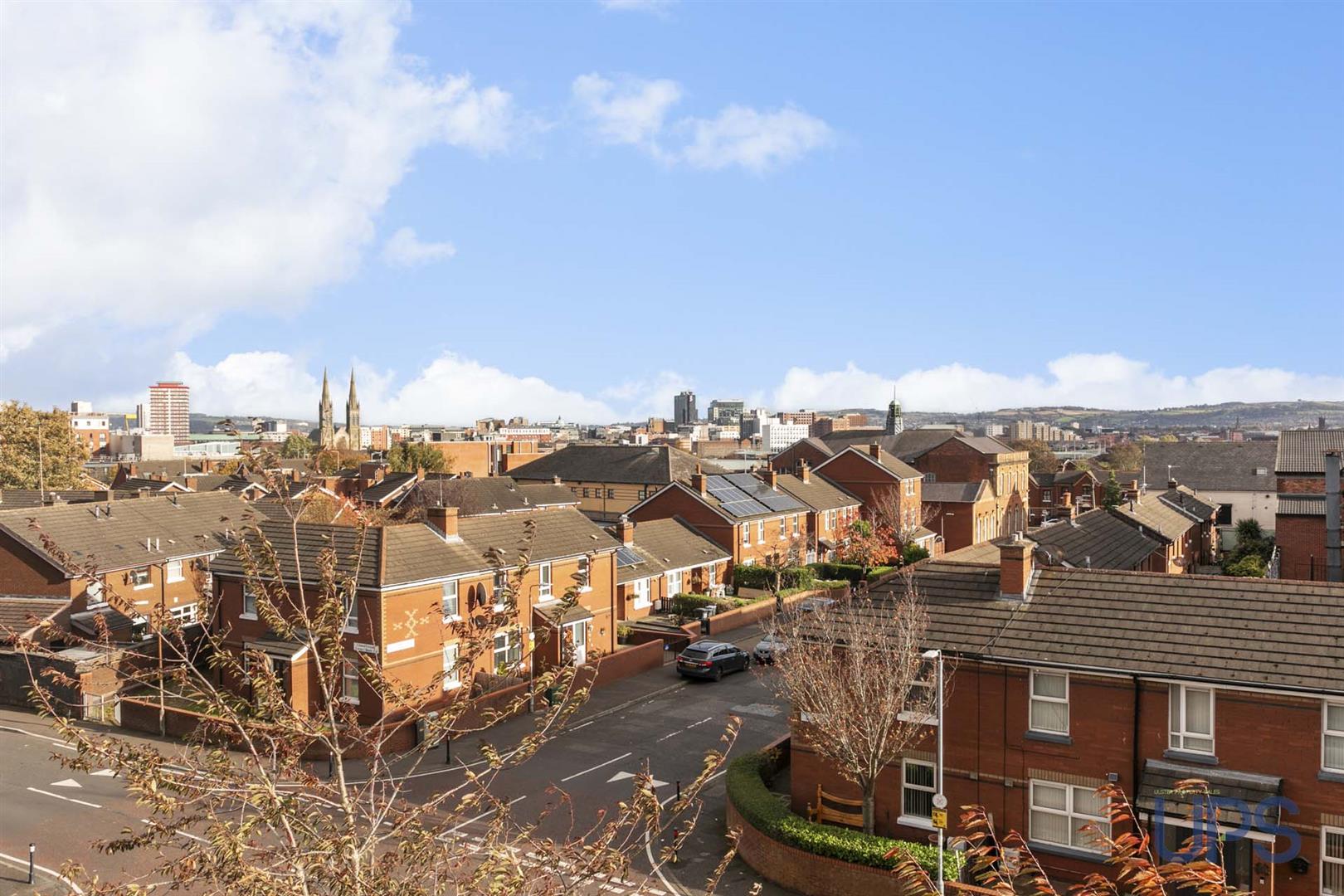 A comfortable Penthouse Apartment that commands a magnificent position within this established residential development off the Falls Road. Upgraded, well maintained and presented, this luxurious, top floor apartment with own door access offers well appointed south facing bright accommodation throughout. Two good, double bedrooms each with built-in robes. Principle bedroom with ensuite shower room, lounge open to dining area. Luxury fully fitted kitchen. White bathroom suite. Gas fired central heating system. Above Average Energy Rating EPC " C " / High ceilings complemented by feature ceiling high double glazed windows. Feature floor coverings. Freshly painted throughout. Gated car parking facility with remote access / communal gardens. Fantastic doorstep convenience within easy walking distance of Schools / shops / Royal Victoria Hospital / Glider Service. Competitively priced first time buy / investment / chain free / immediate possession. The best on offer within this development, well worth a visit.