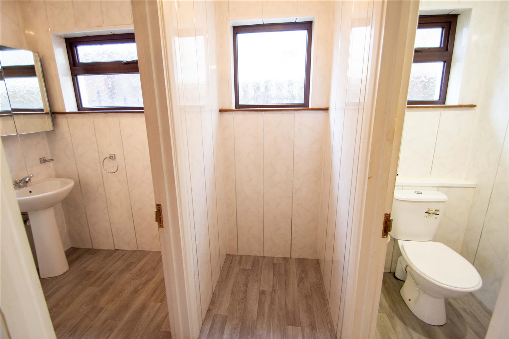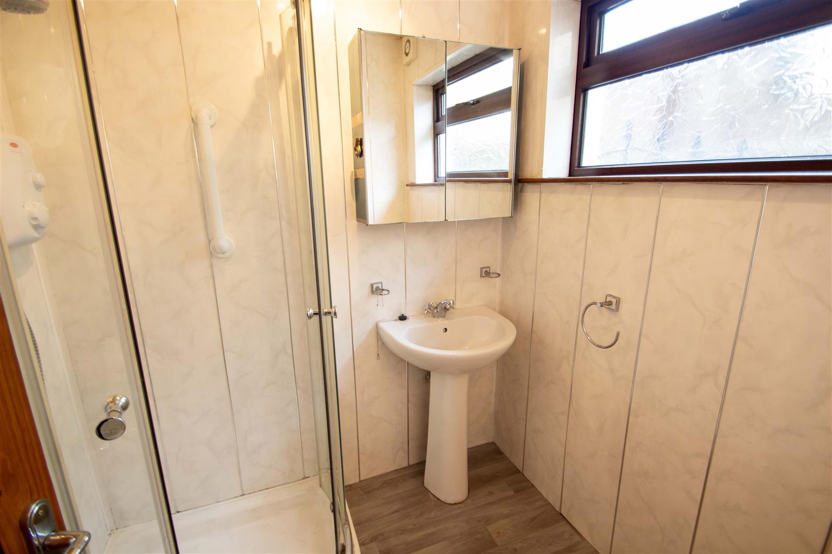 Feature Shower Cubicle. Electric shower unit, pedestal wash hand basin.