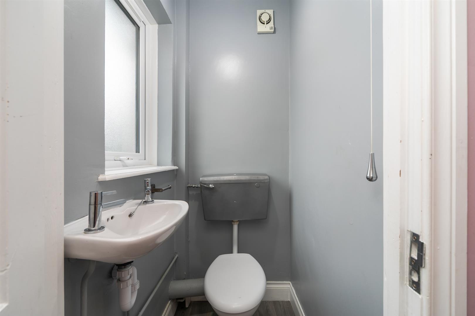 Low flush w.c, wash hand basin, extractor fan.
