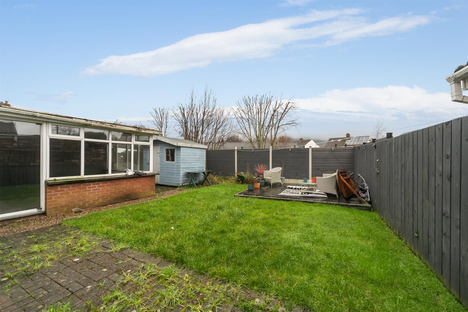 Additional benefits include uPVC double glazing, gas-fired central heating, off-road car parking, and a good-sized, privately enclosed rear garden with a brick paviour patio area. The property also enjoys pleasant views towards Black Mountain.