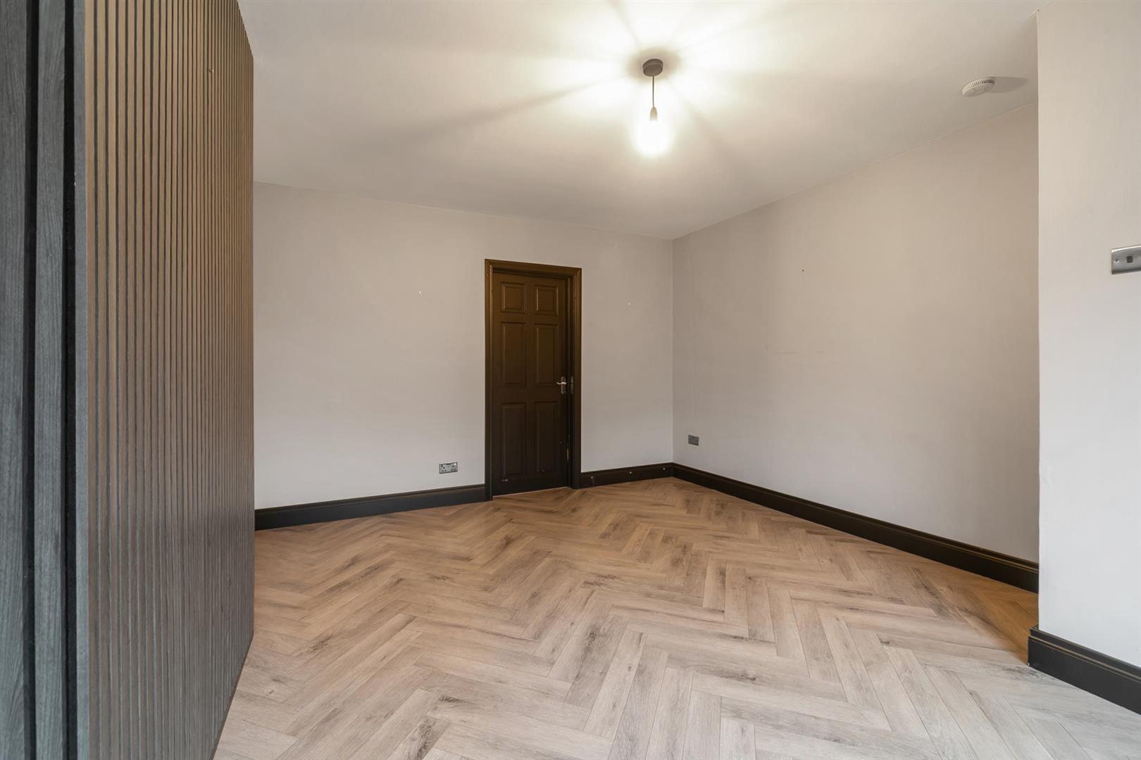 Herringbone effect wood floor.