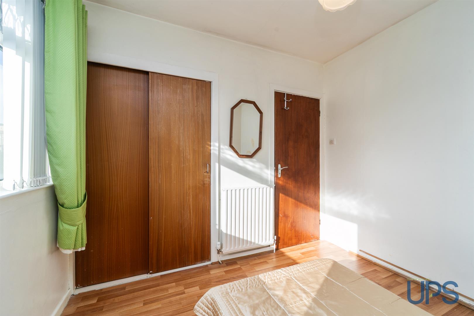 Laminated wood effect floor. Built-in robe.