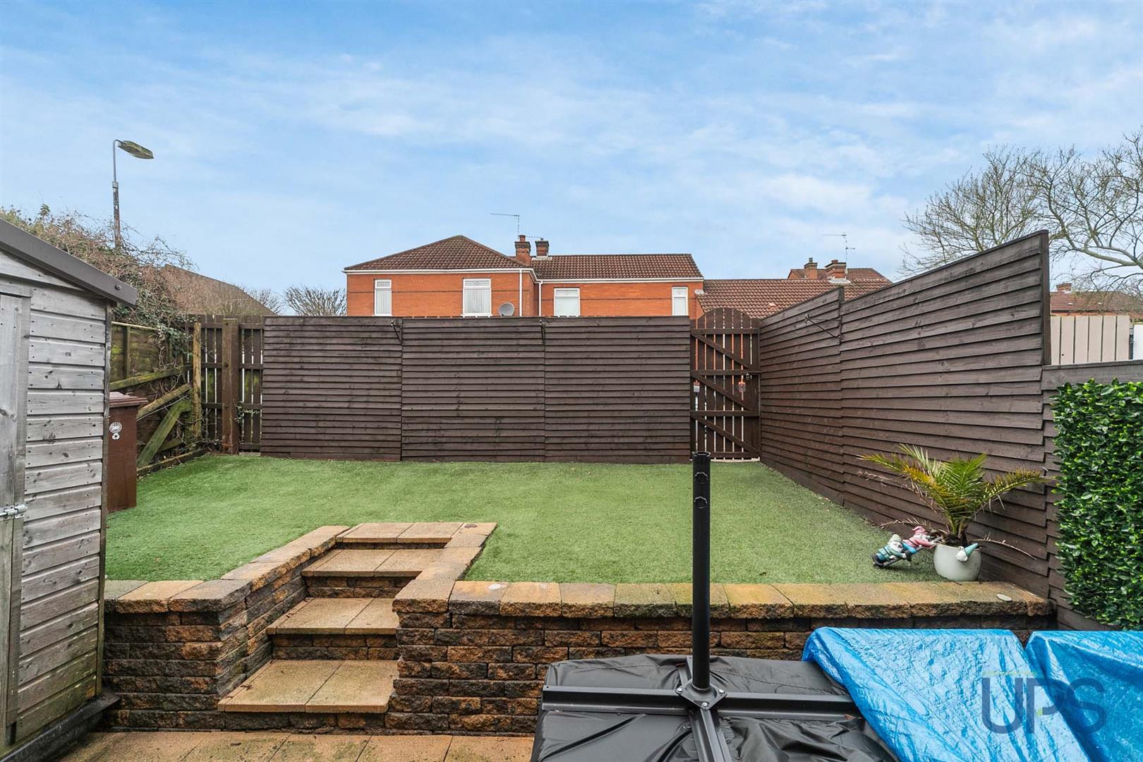 Well maintained landscaped private and secure rear garden, garden shed, light and power, fenced with roll down lawn.